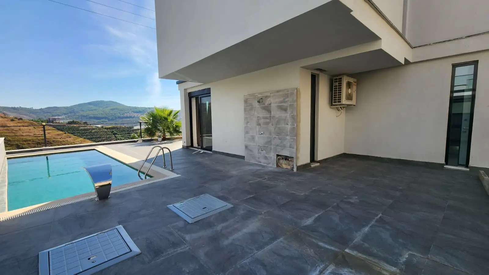 Внутри: Внутри виллы расположены три спальни, включая две мастер-спальни и одну гостевую, а также три полностью оборудованные ванные комнаты. Просторная гостиная и современная кухня обставлены мебелью высокого качества, создавая атмосферу комфорта и стиля. Интерьер дополнен тщательно подобранными декоративными элементами: картинами, зеркалами и шторами. Вся вилла оснащена SMART SYSTEM, которая позволяет управлять звуком, освещением и кондиционерами через встроенные панели на стене или мобильное приложение, доступное для контроля из любой точки мира. Для отделки использованы только качественные и обновлённые материалы, что подчёркивает высокий уровень исполнения и внимание к деталям.