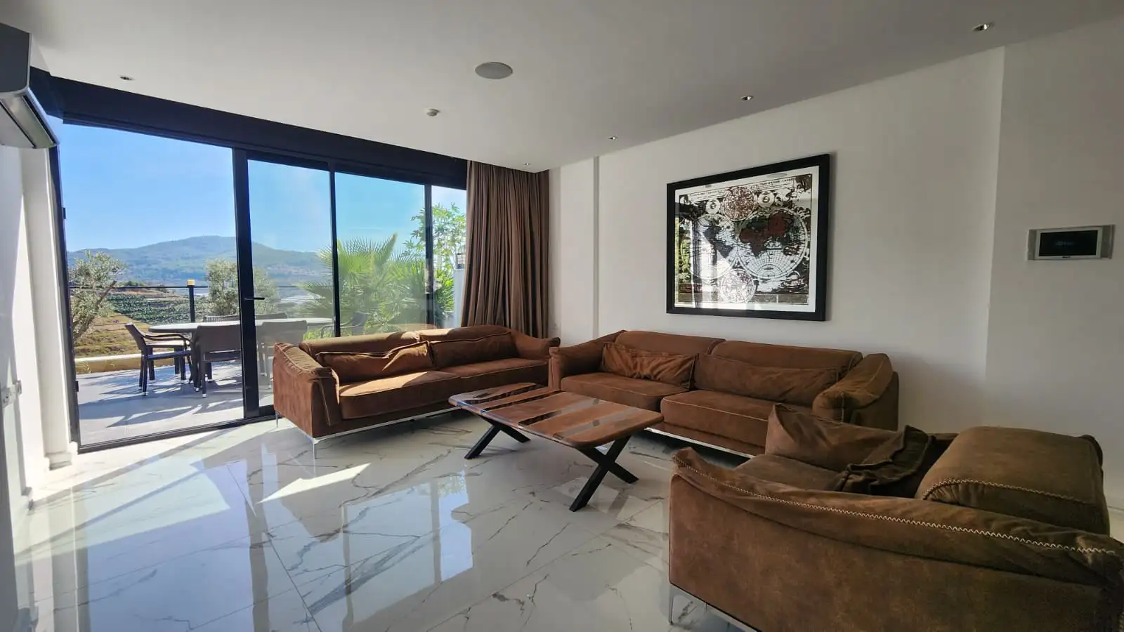Что вы получаете: Просторную виллу площадью 180 м², полностью меблированную и готовую к проживанию. Каждая деталь продумана до мелочей – от стильных штор до декоративных стен с картинами и зеркалами.