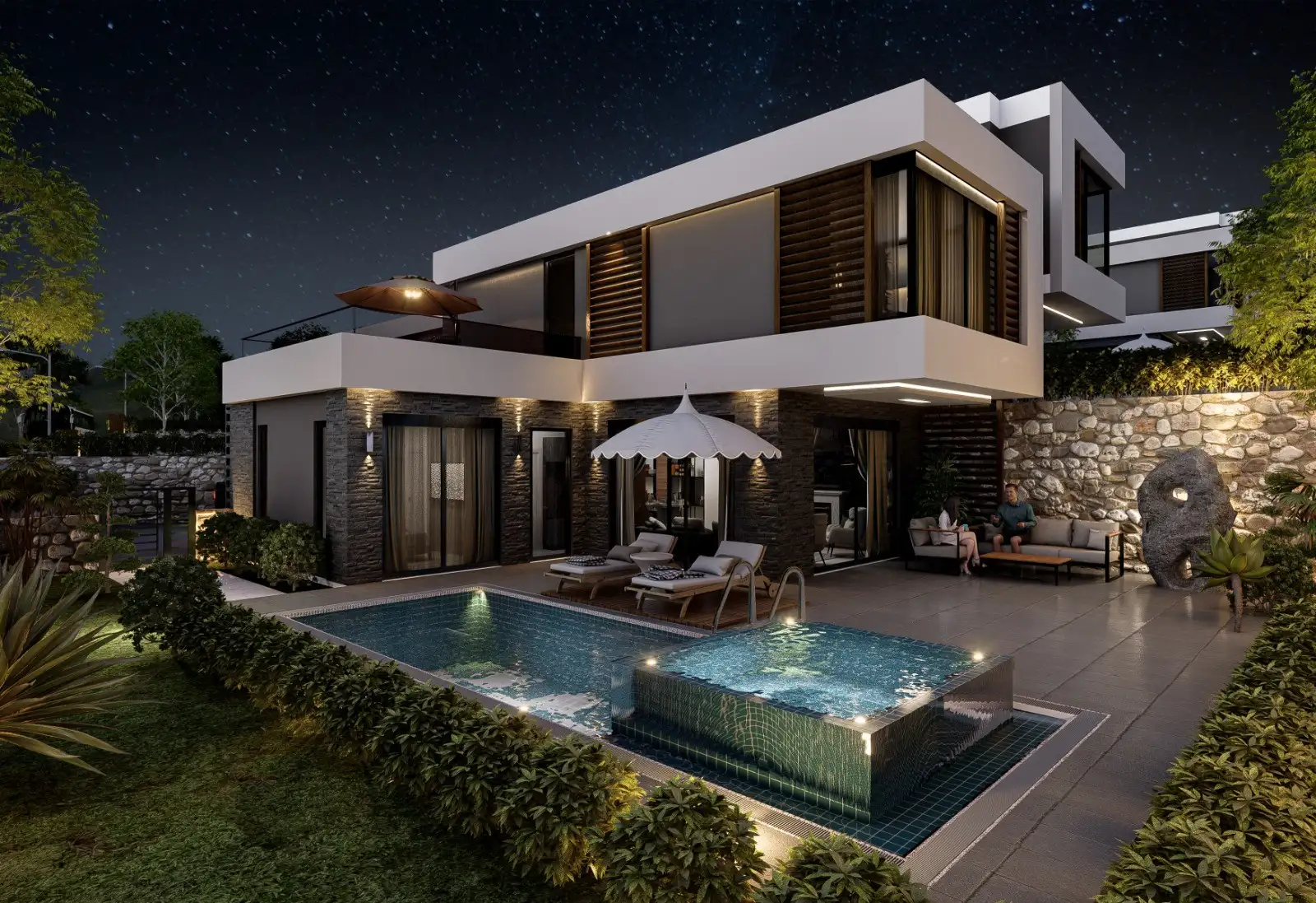 Что вы получаете: Виллы с видом на море в тихой части района Авсаллар.