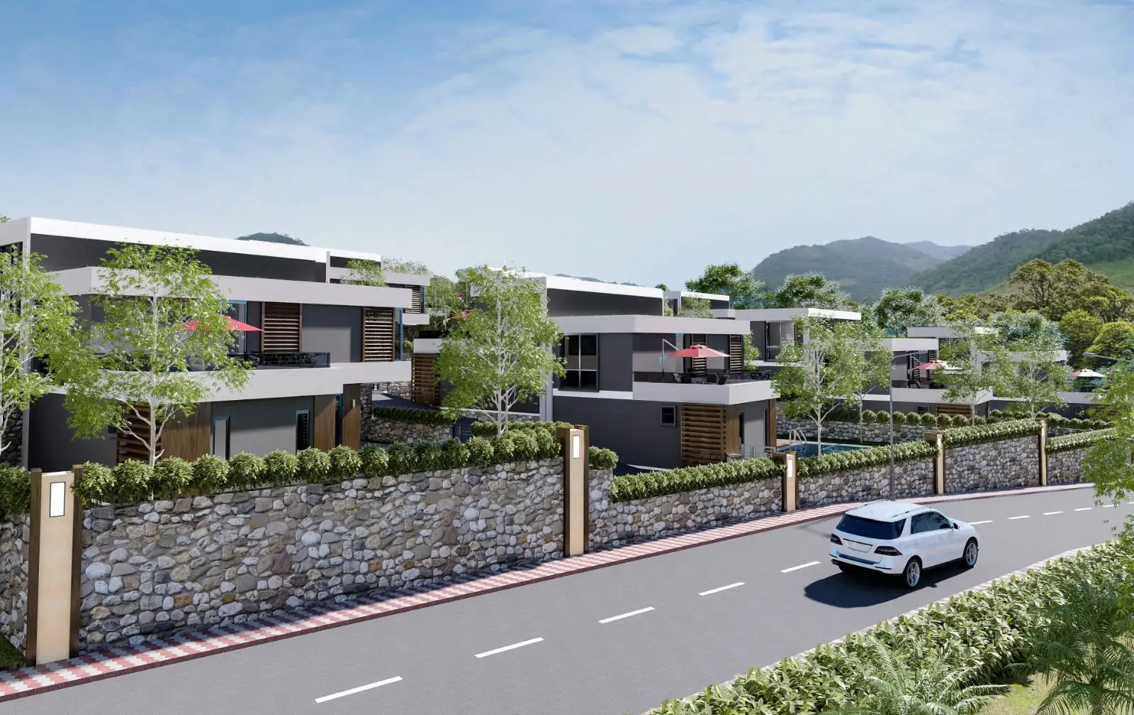 Что в комплексе: На территории 7000 м2 расположено множество вилл с общей территорией 300 м2 и жилой площадью 155 м2. Каждая вилла имеет систему видеонаблюдения и охраны, собственный бассейн и сад у каждой виллы. Из каждого дома отрывается вид на море.