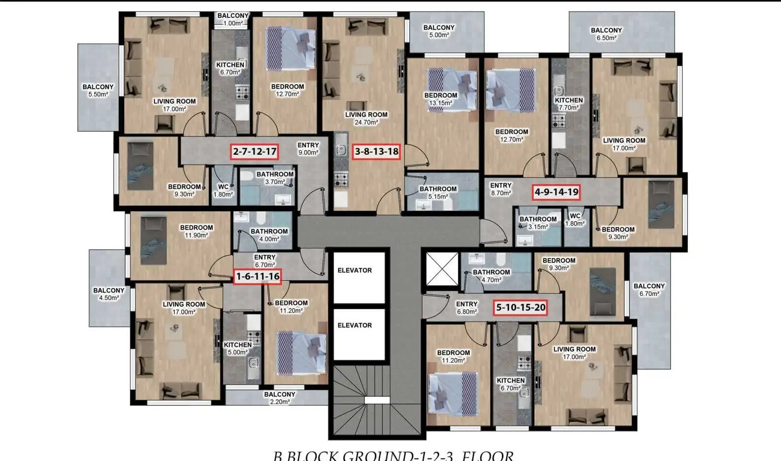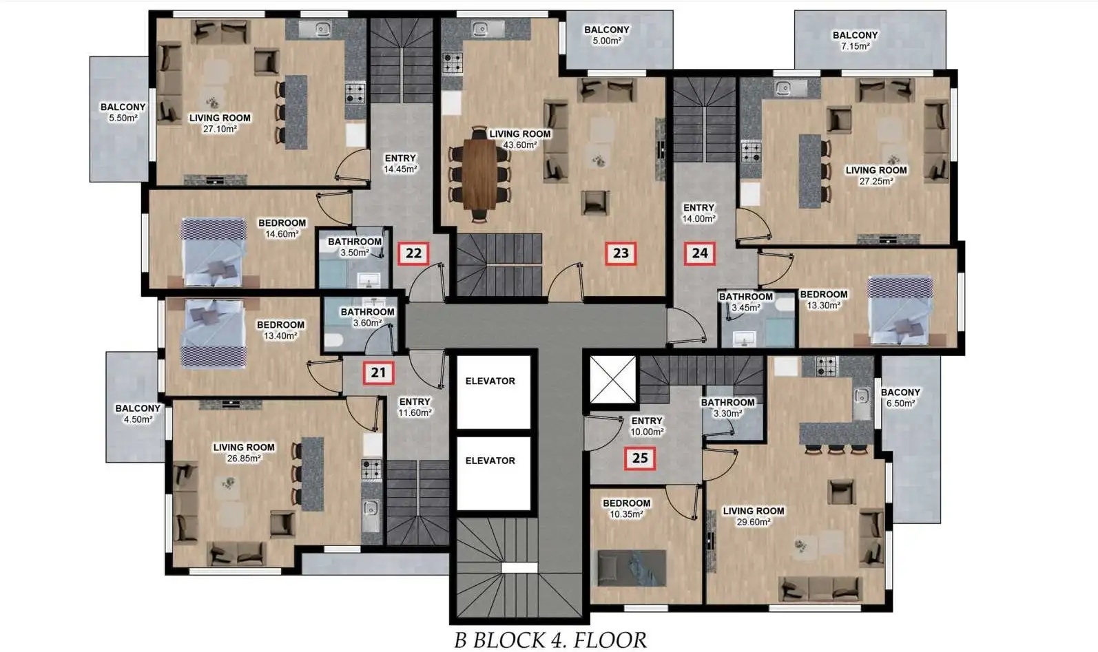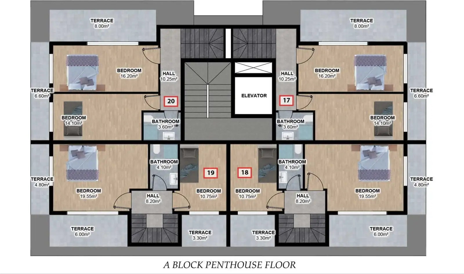 пентхаусы планировкой 3+1, с площадью 130 и 150 м2;