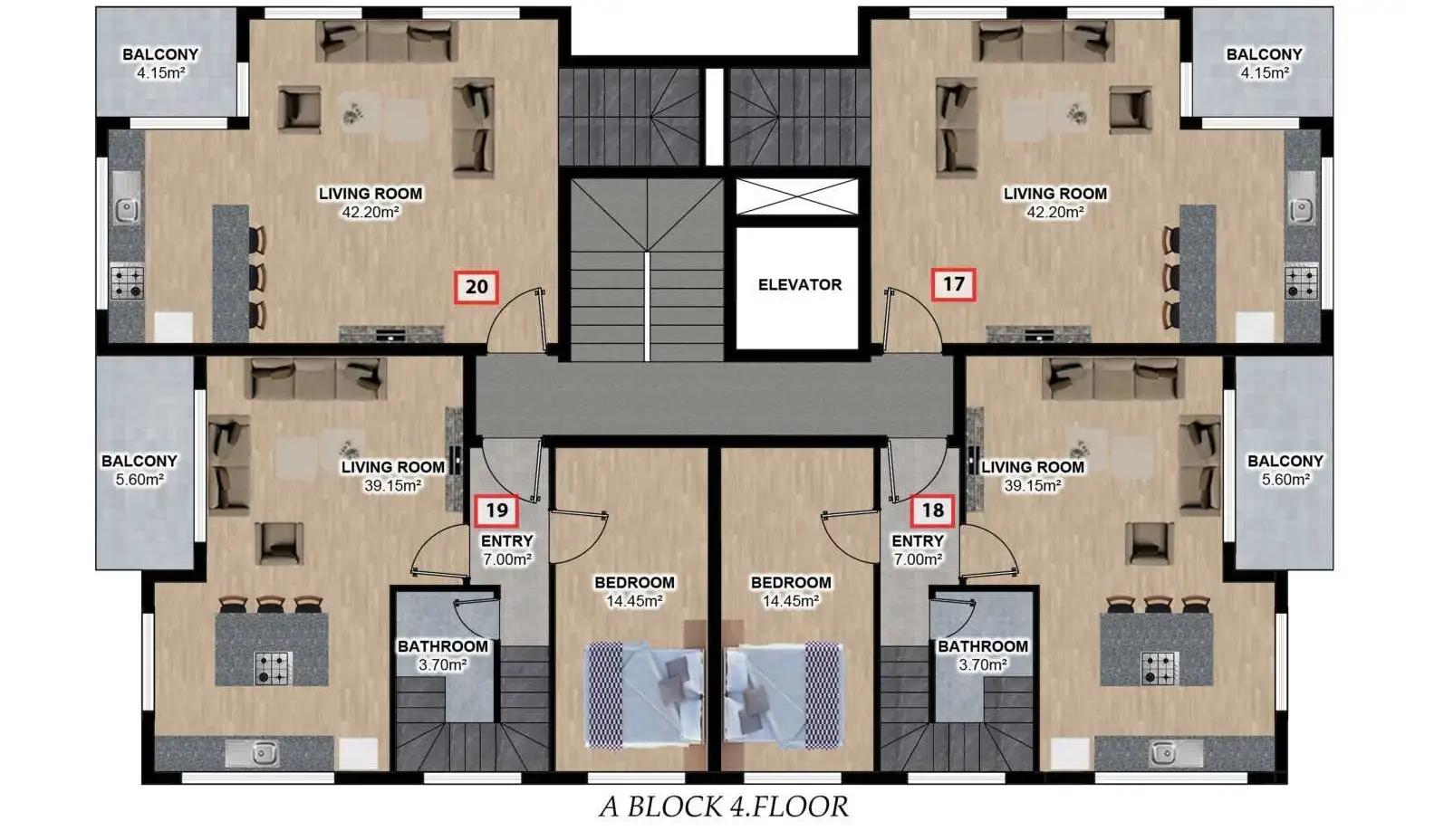 пентхаус планировкой 4+1, с площадью 150 м2.