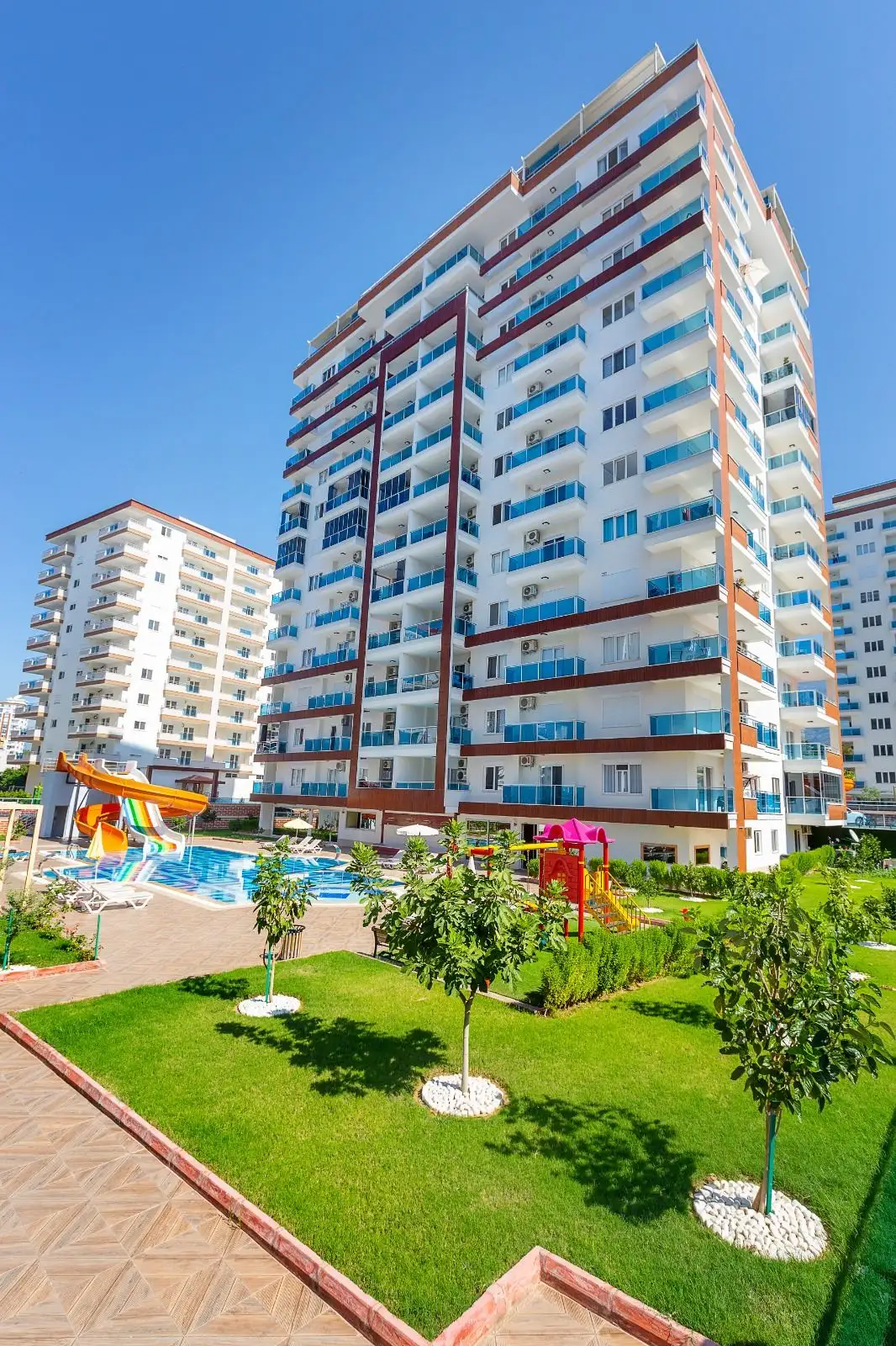 Комплекс находится в Махмутларе — одном из самых популярных и благоустроенных районов Аланьи, где комфортно жить круглый год. Здесь проживает около 50 тысяч человек, и район известен своей интернациональной средой. Инфраструктура отлично развита: школы, детские сады, поликлиника, банки, торговые центры, множество магазинов, кафе и регулярный базар.;