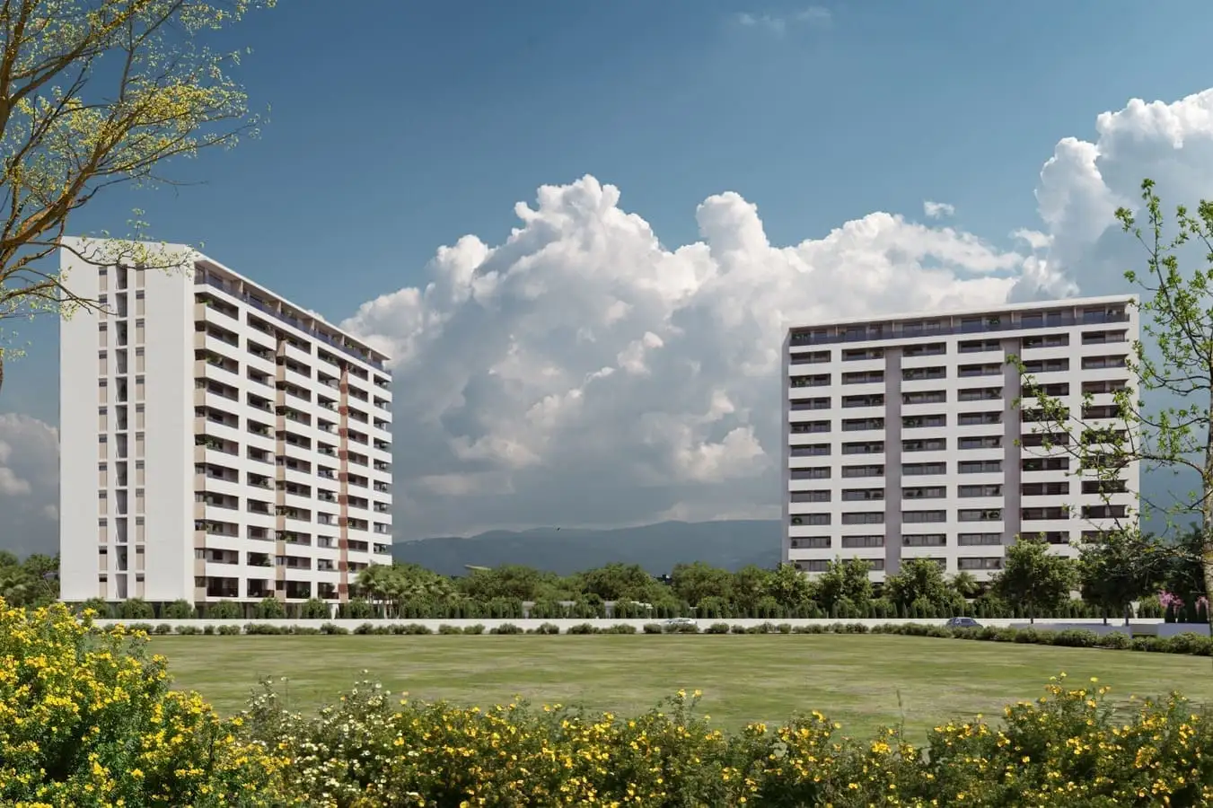Что в комплексе: На закрытой территории с ландшафтным дизайном площадью 12 000 м2 будет расположено 2 жилых блоков, открытый бассейн, зона отдыха с шезлонгами и кафе у бассейна, детская площадка, баскетбольная площадка, зона отдыха и барбекю, хамам, финская сауна, фитнес, открытая парковка, генератор.