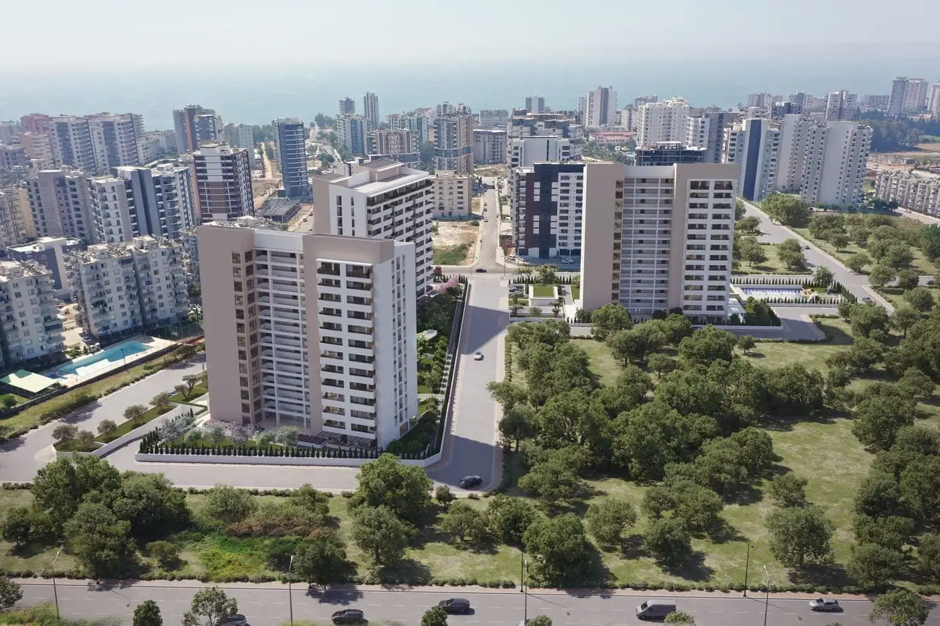 Что рядом: Комплекс будет расположен в 500 метрах от моря; расстояние до центра города Мерсина составляет 20 минут езды.