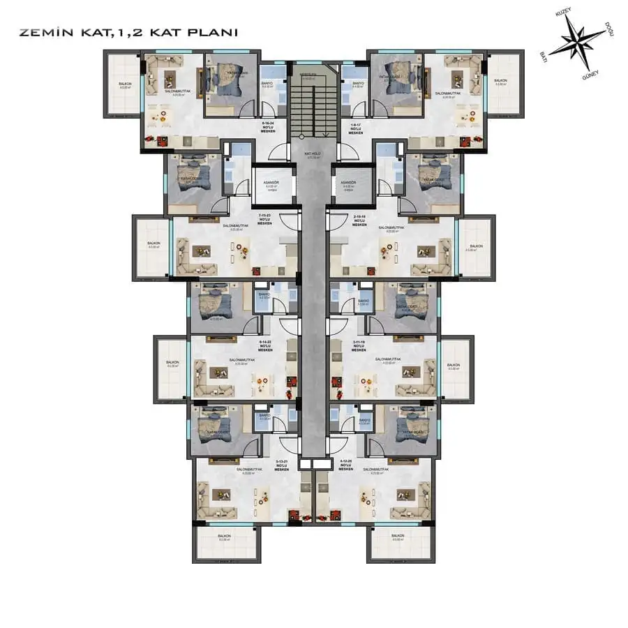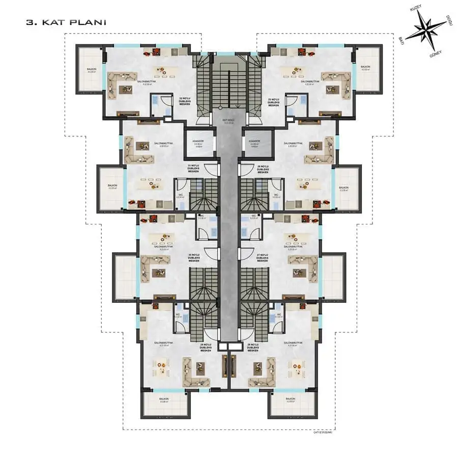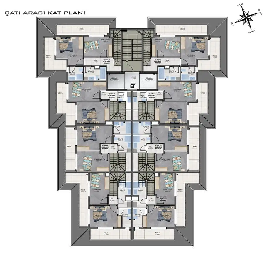 2+1 пентхаусы площадью от 82 м2 до 89 м2.
