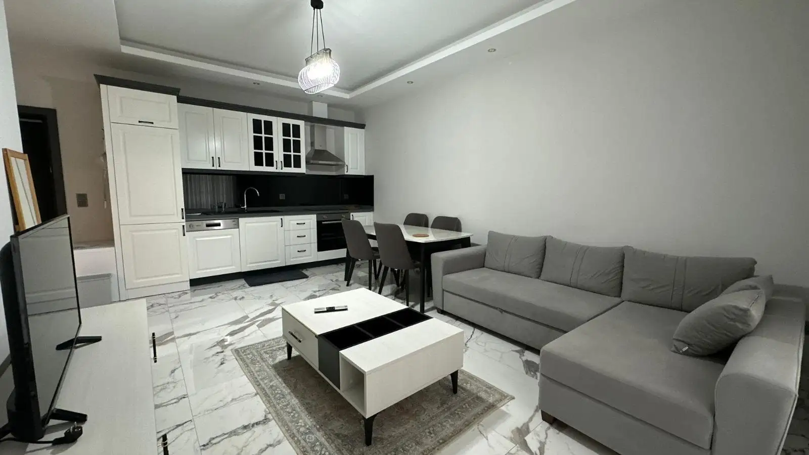 Что вы получаете: Уютная квартира планировки 1+1 общей площадью 63 м² (57 м² жилая), расположенная на 4 этаже современного дома. Жильё полностью меблировано и готово к проживанию: стильная светло-серая отделка, мебель в тон, продуманная планировка и просторный балкон с видом на море. Отличное решение для отдыха или долгосрочного проживания.