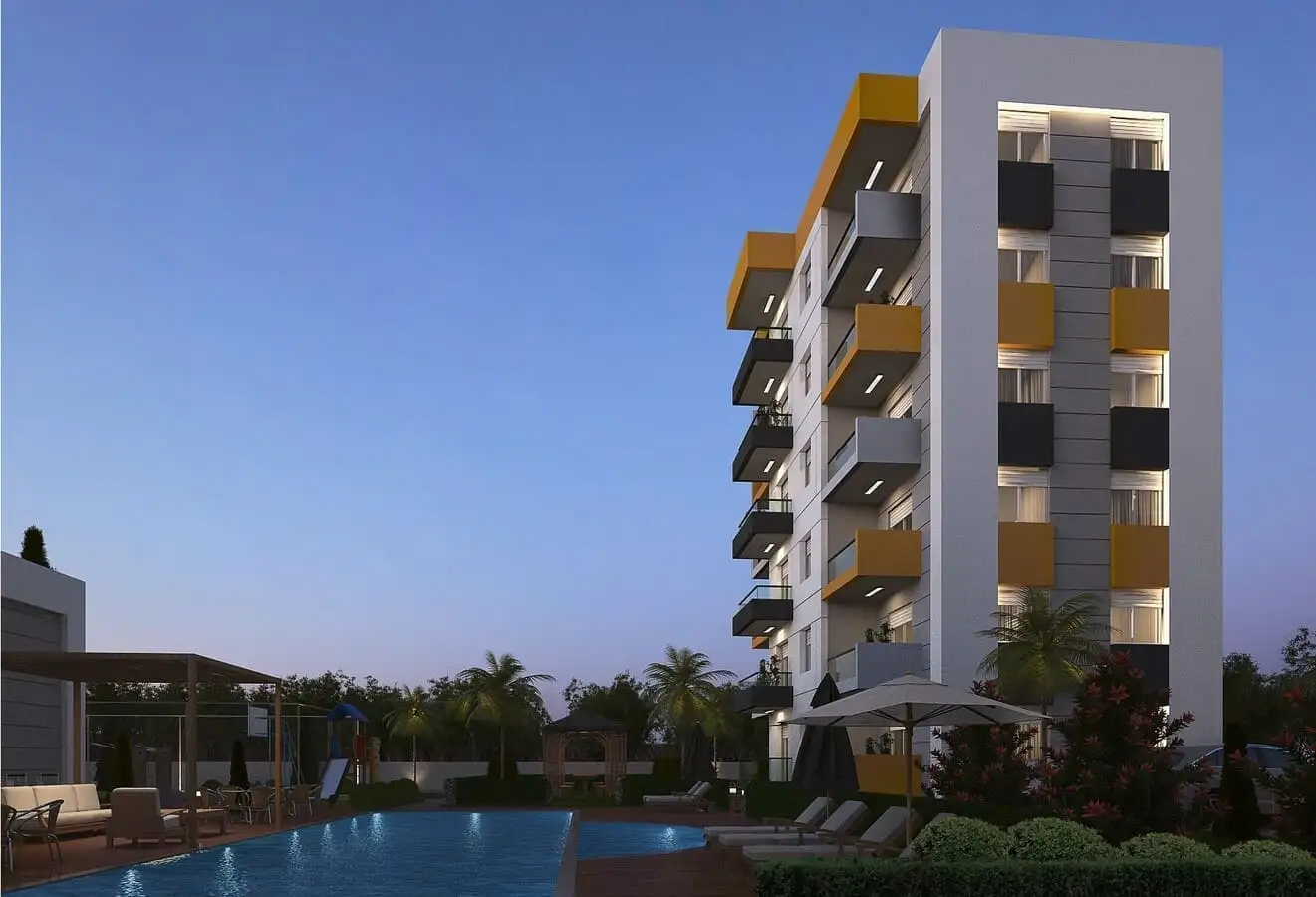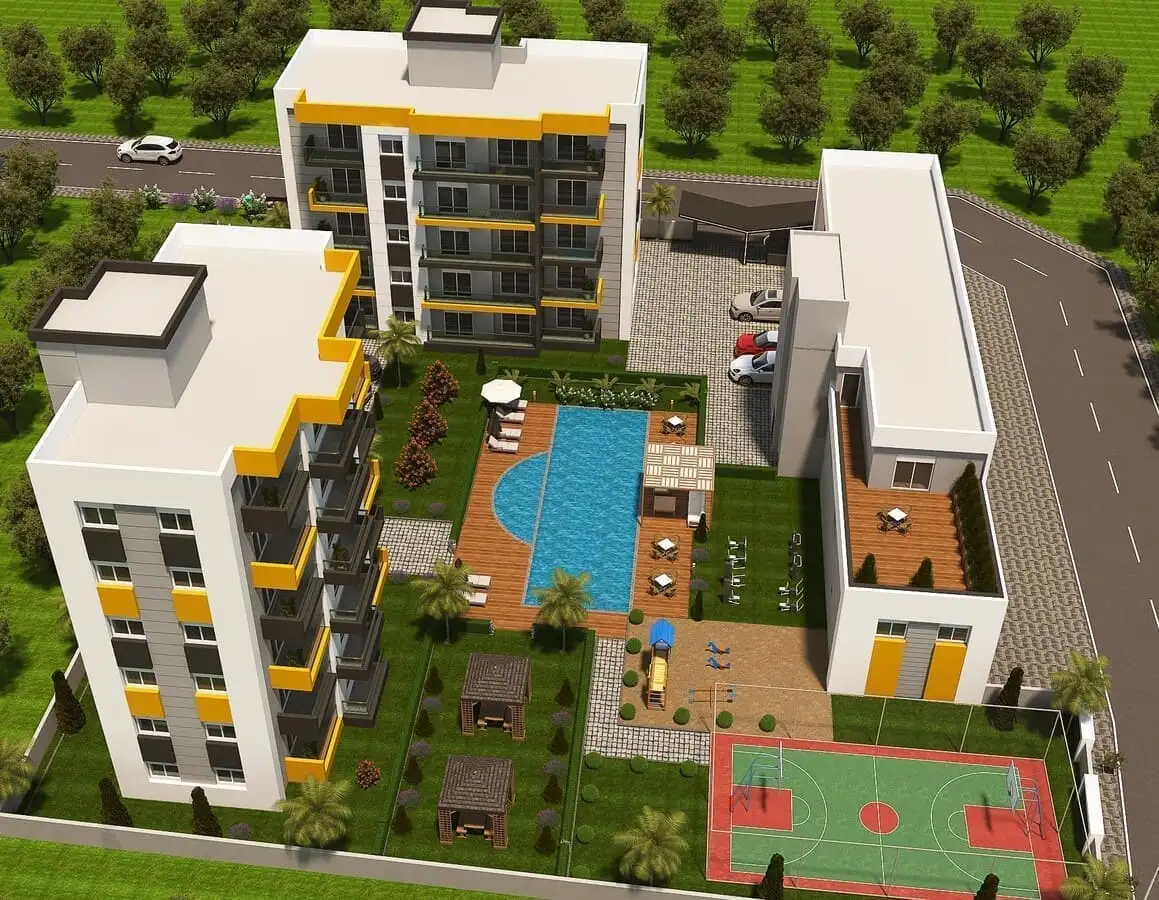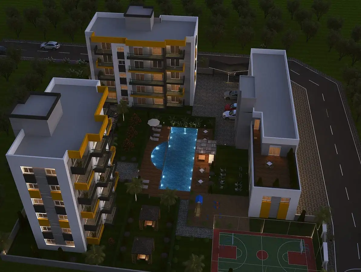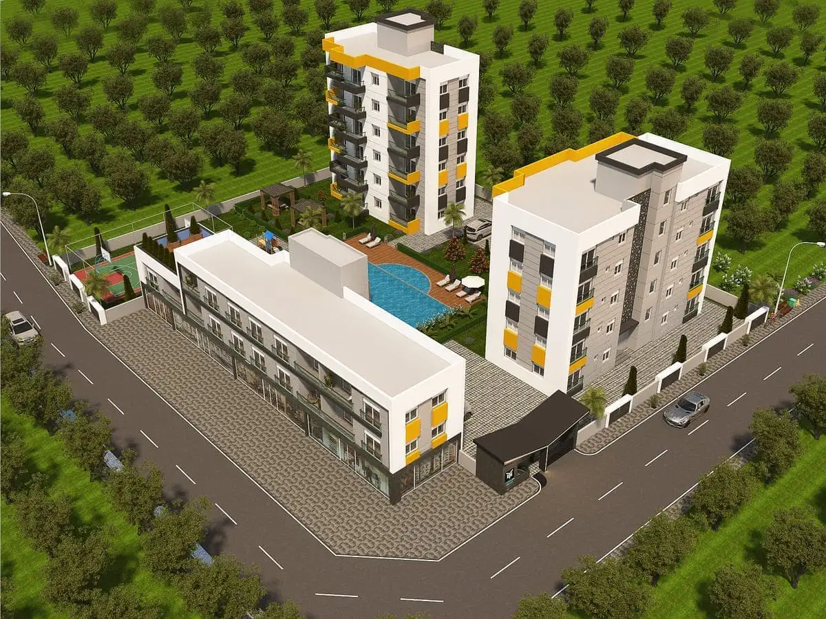 Что рядом: Комплекс будет расположен всего в 10-ти минутах от центра города и 5 минутах от аэропорта и 10 минута от элитного района Анталии – Лара, где расположены крупные торговые центры, магазины, банки, рестораны, парки и различные достопримечательности, шикарный пляж Лара.