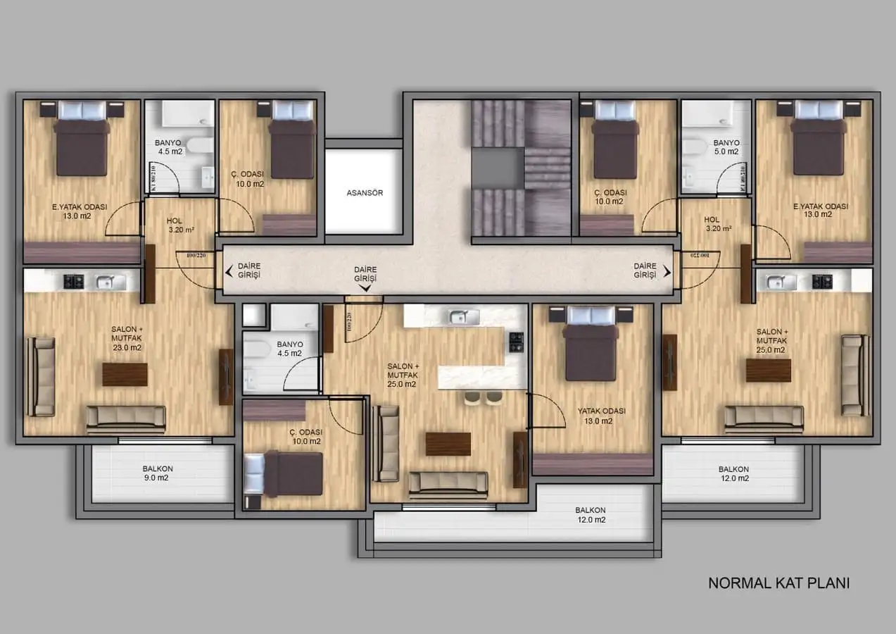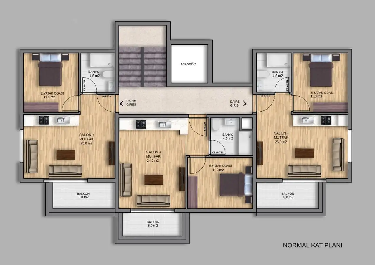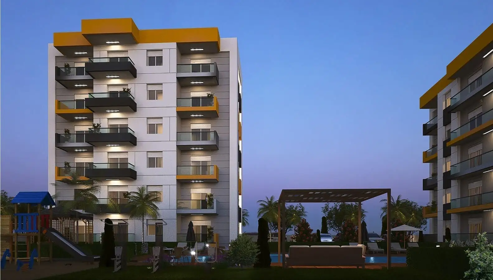Что рядом: Комплекс будет расположен всего в 10-ти минутах от центра города и 5 минутах от аэропорта и 10 минута от элитного района Анталии – Лара, где расположены крупные торговые центры, магазины, банки, рестораны, парки и различные достопримечательности, шикарный пляж Лара.