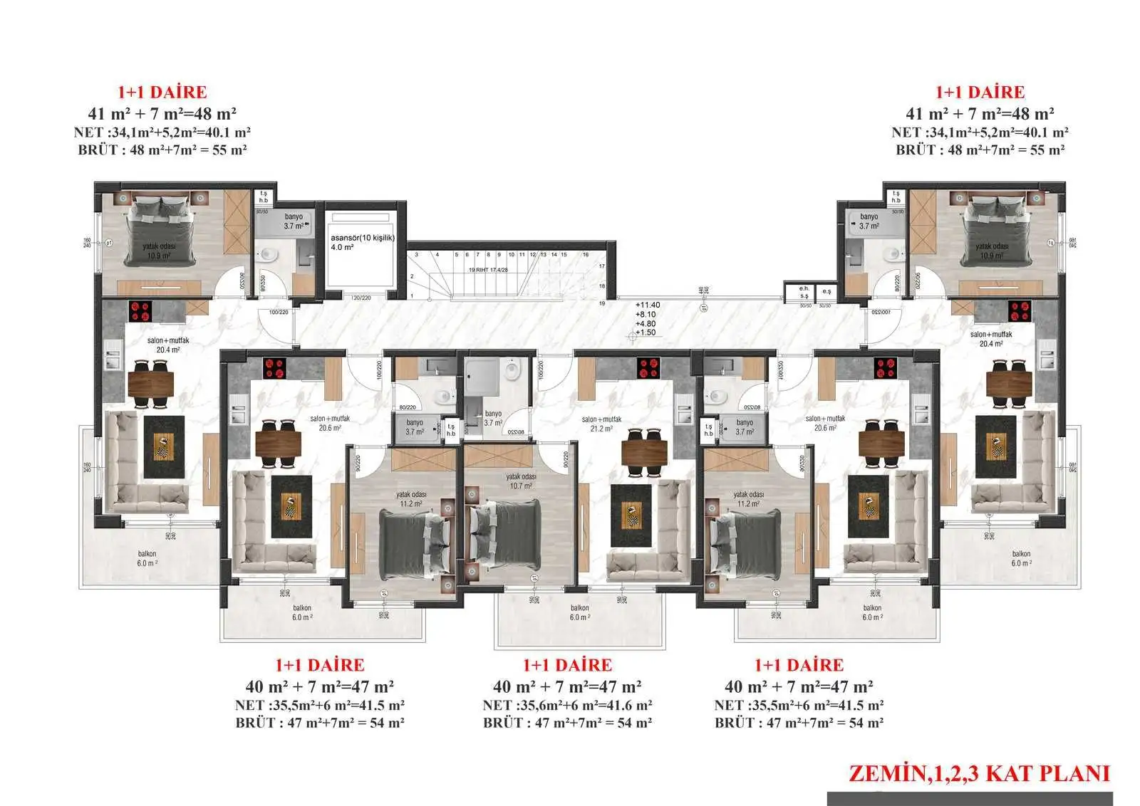 Апартаменты планировкой 1+1 и площадью 54-55 м2,
