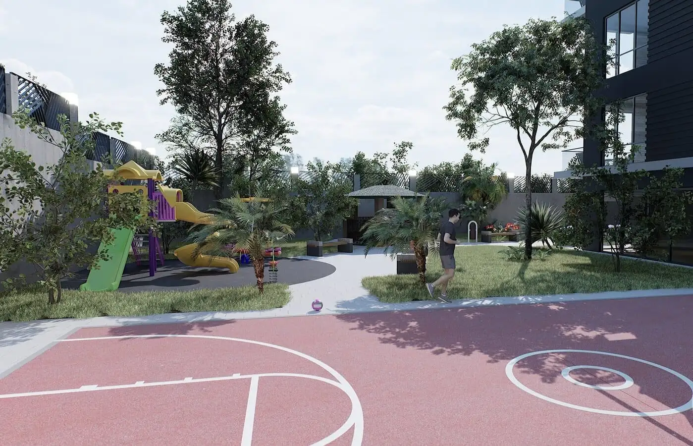 Что в комплексе: На закрытой, озелененной территории будет расположен 1 жилой блок на 36 квартир, открытый и детский бассейны, беседки для отдыха, детская площадка, баскетбольная площадка, бильярд, фитнес, хамам, финская сауна, открытая парковка.