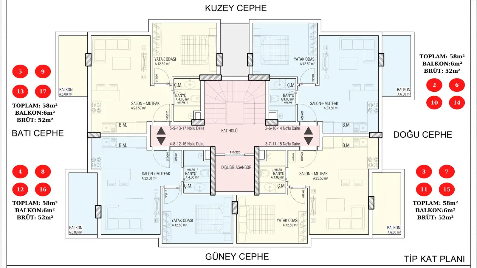 квартиры 1+1, площадью 64 м2,