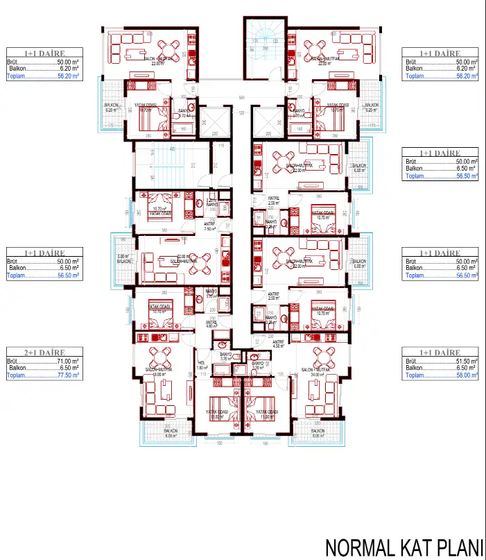 Внутри: Квартира 1+1 раположена на 3м этаже и имеет общую площадь 56м2. Апартаменты сдаются с полной чистовой отделкой с кухонным гарнитуром и оборудованными санузлами. Остается только выбрать красивую мебель и качественную бытовую технику, с чем мы вам поможем, в рамках бесплатного, послепродажного сервиса от нашей компании.
