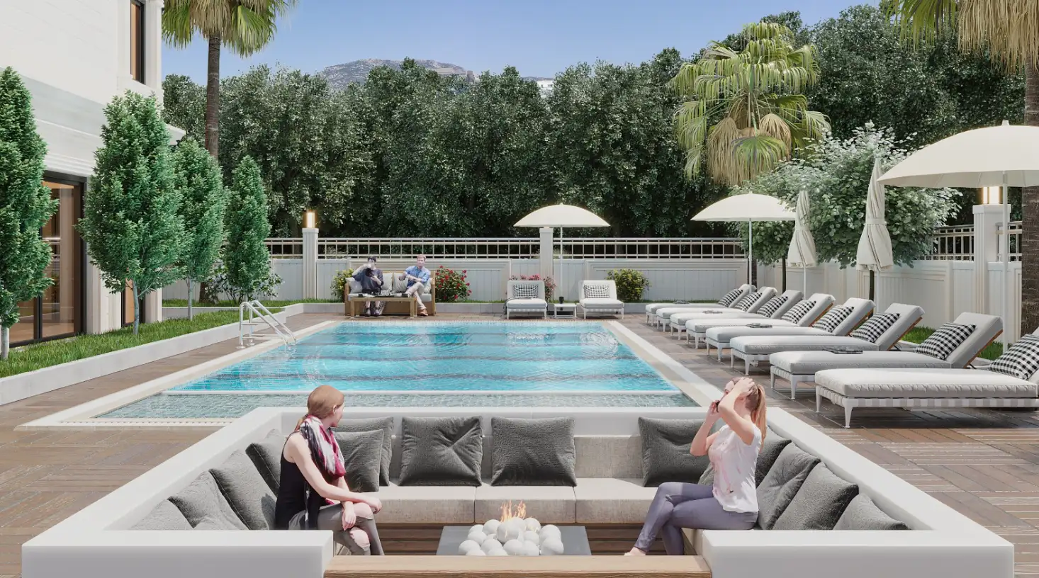 Что в комплексе: На закрытой территории расположен 1 жилой блок. Комплекс располагает всей необходимой инфраструктурой для комфортного круглогодичного пребывания: открытый бассейн, фитнес, финская сауна, римская парная, бильярд, детский бассейн, беседка у бассейна, зона отдыха и барбекю, детская площадка, открытая парковка, генератор.