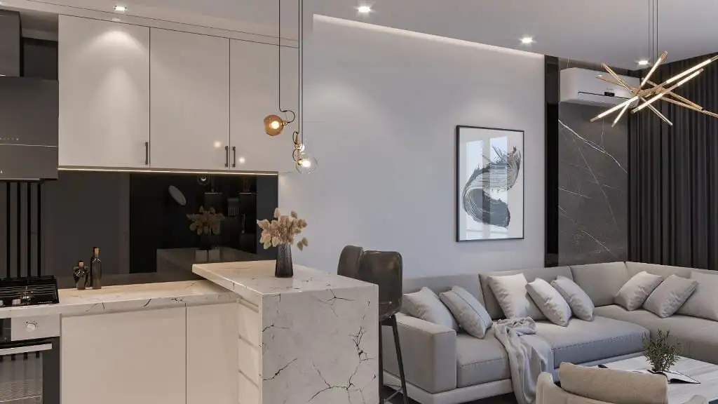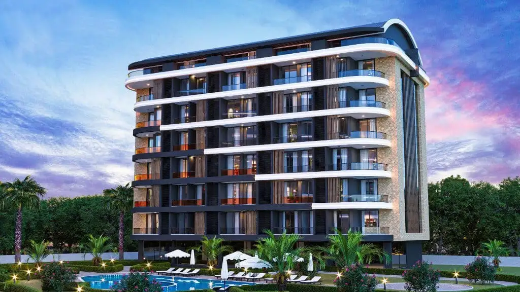 Что в комплексе: На закрытой охраняемой территории общей площадью 9056 м2 будет расположено четыре семиэтажных блоков на 175 квартир, сад с декоративными деревьями, открытые бассейны, детский бассейн, бар у бассейна, беседка для отдыха, зона отдыха и барбекю, детская площадка с каучуковым покрытием, теннисный корт/баскетбольная площадка, фитнес, комната для пилатеса и йоги, SPA – финская сауна, хамам, римская парная, джакузи, зона отдыха, мини клуб, коворкинг, игровая комната – настольный теннис, бильярд, помещение для хранения, открытая парковка у каждого блока, электрогенератор. В комплексе будет предусмотрен трансфер к морю.
