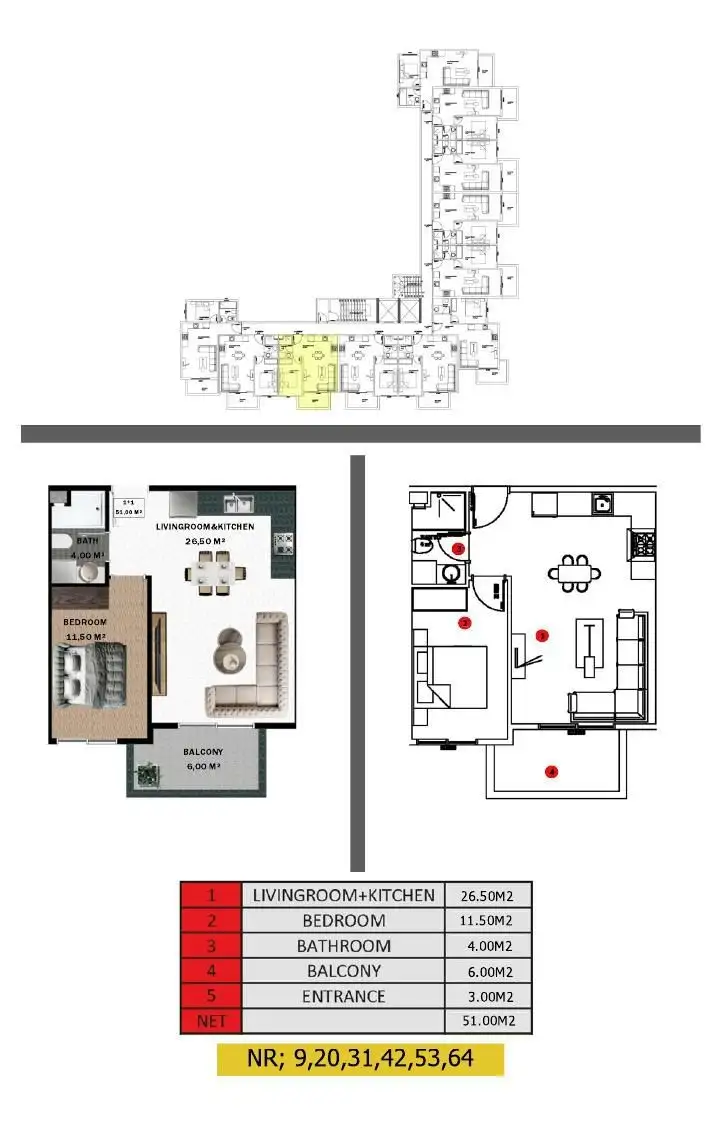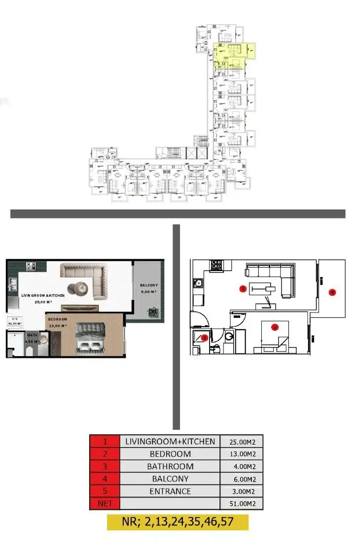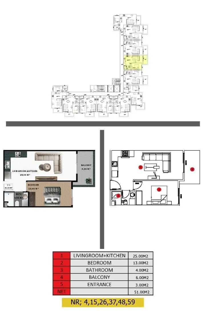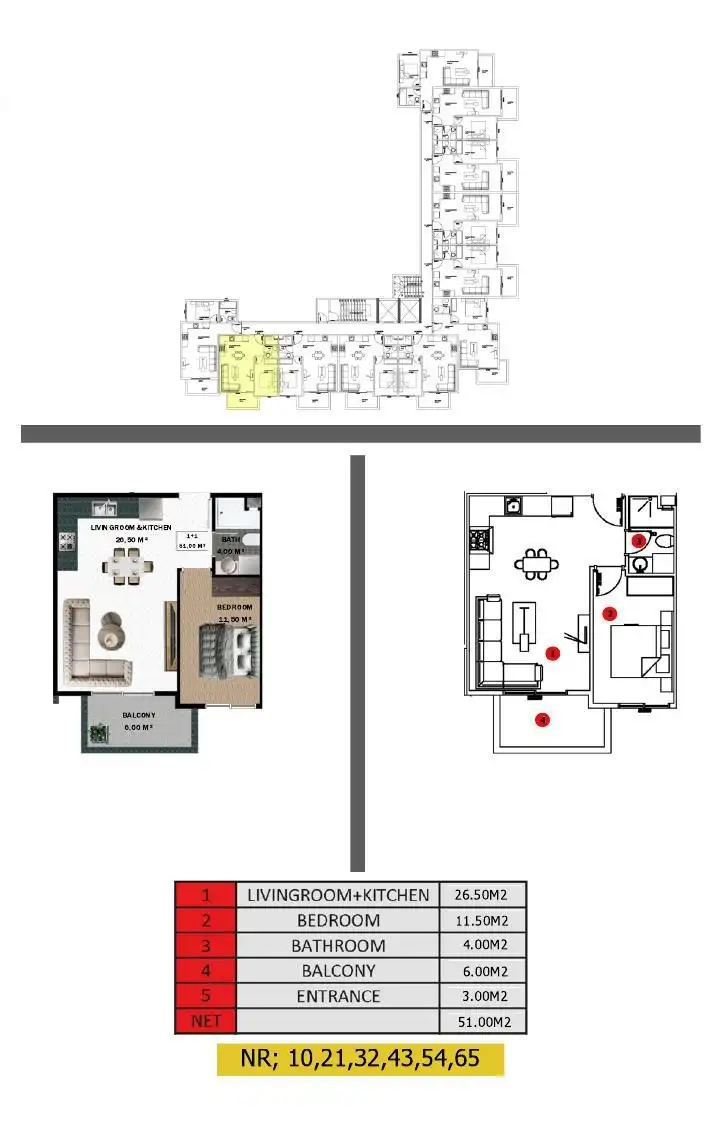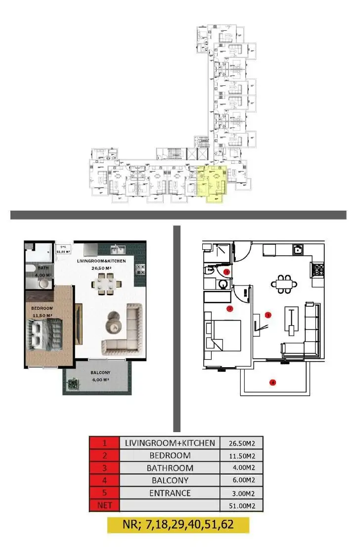 апартаменты 1+1 с жилой площадью от 51 м2;