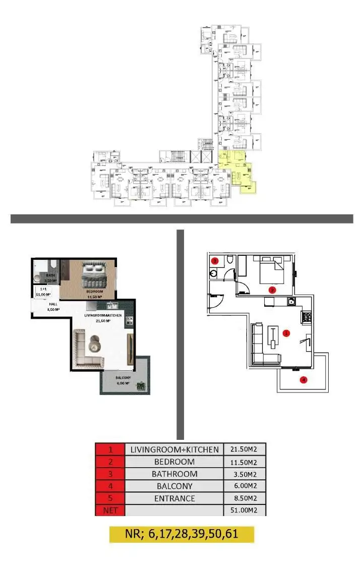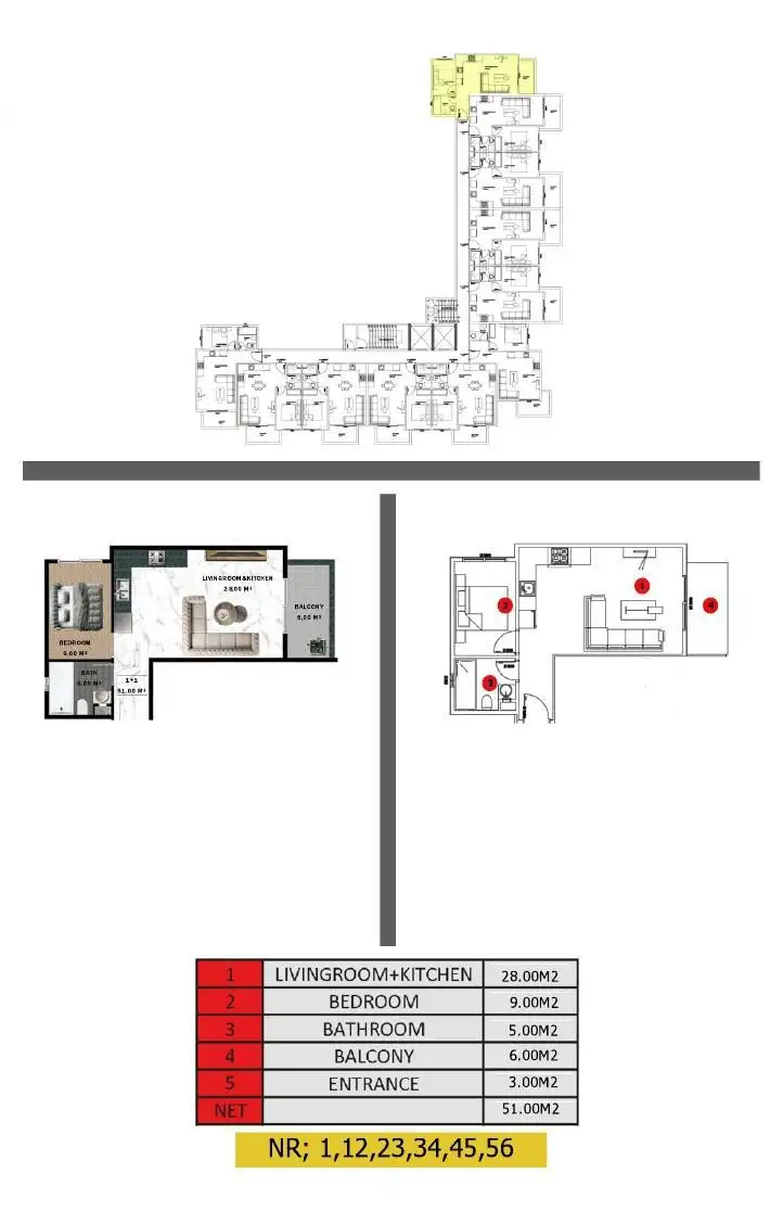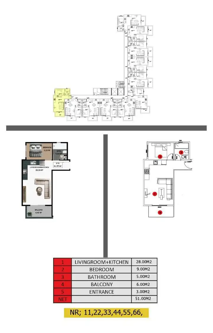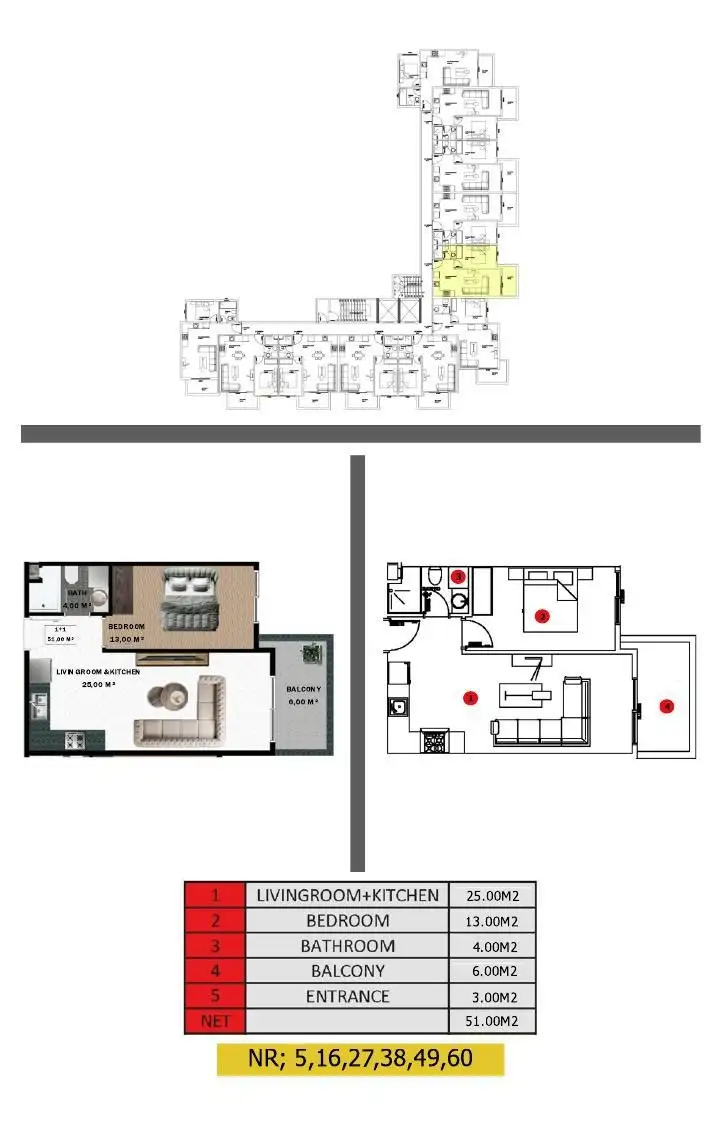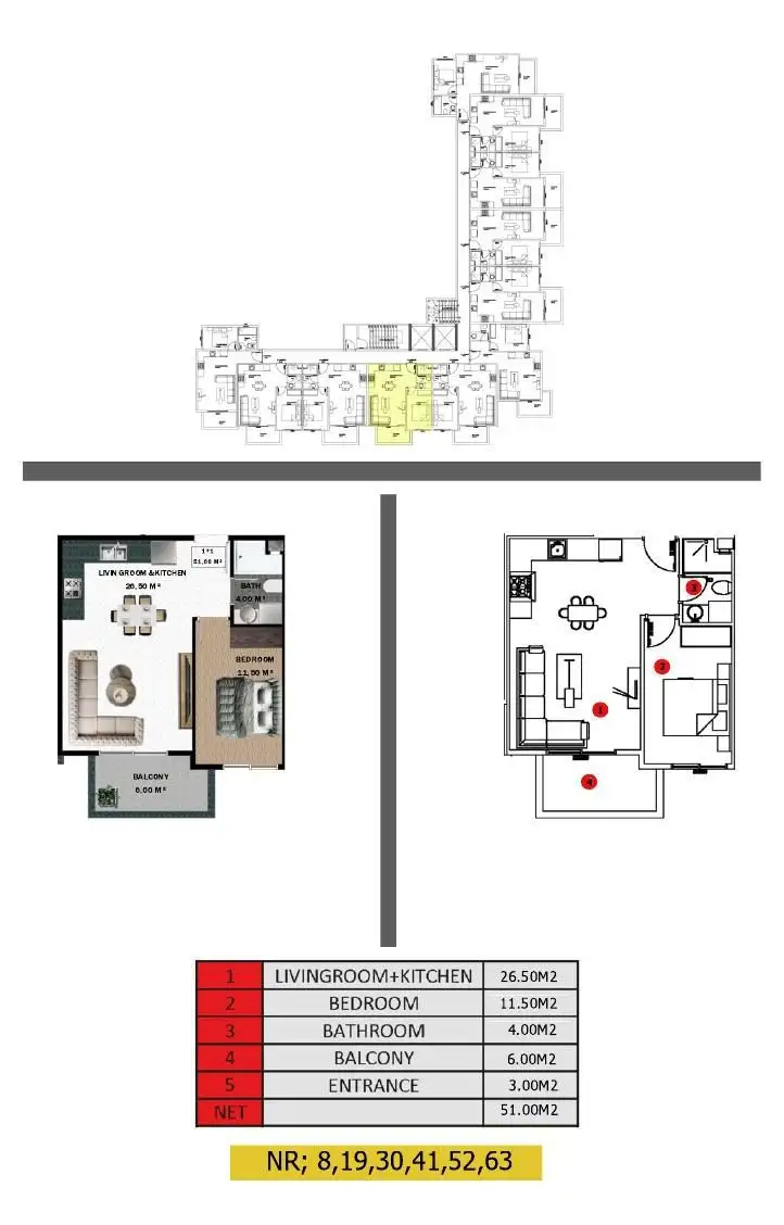 апартаменты 1+1 с жилой площадью от 51 м2;