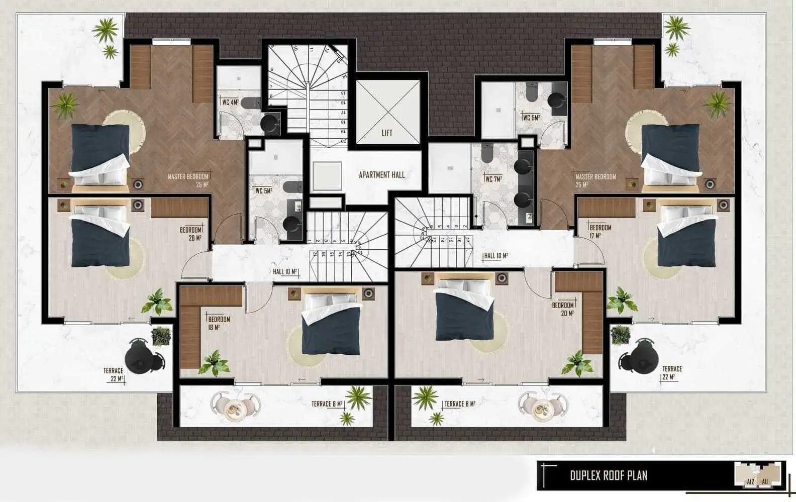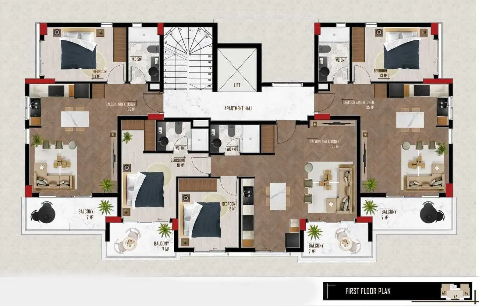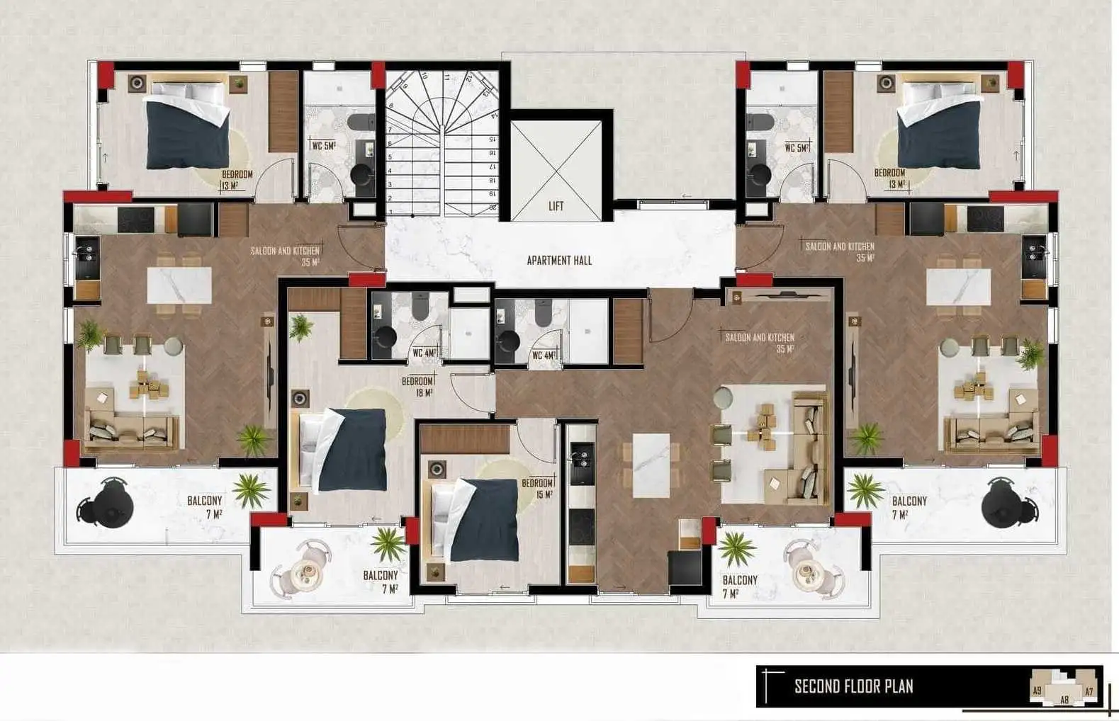 Что рядом: Рядом возле комплекса есть небольшие продуктовые магазины, а в центре расположено множество супермаркетов, ТЦ Alanyum, Metro, продуктовый и вещевой рынок, рестораны и кафе, красивая набережная, парки, детские и спортивные площадки, оборудованные пляжи, автобусные остановки, и другие удобства городской инфраструктуры.