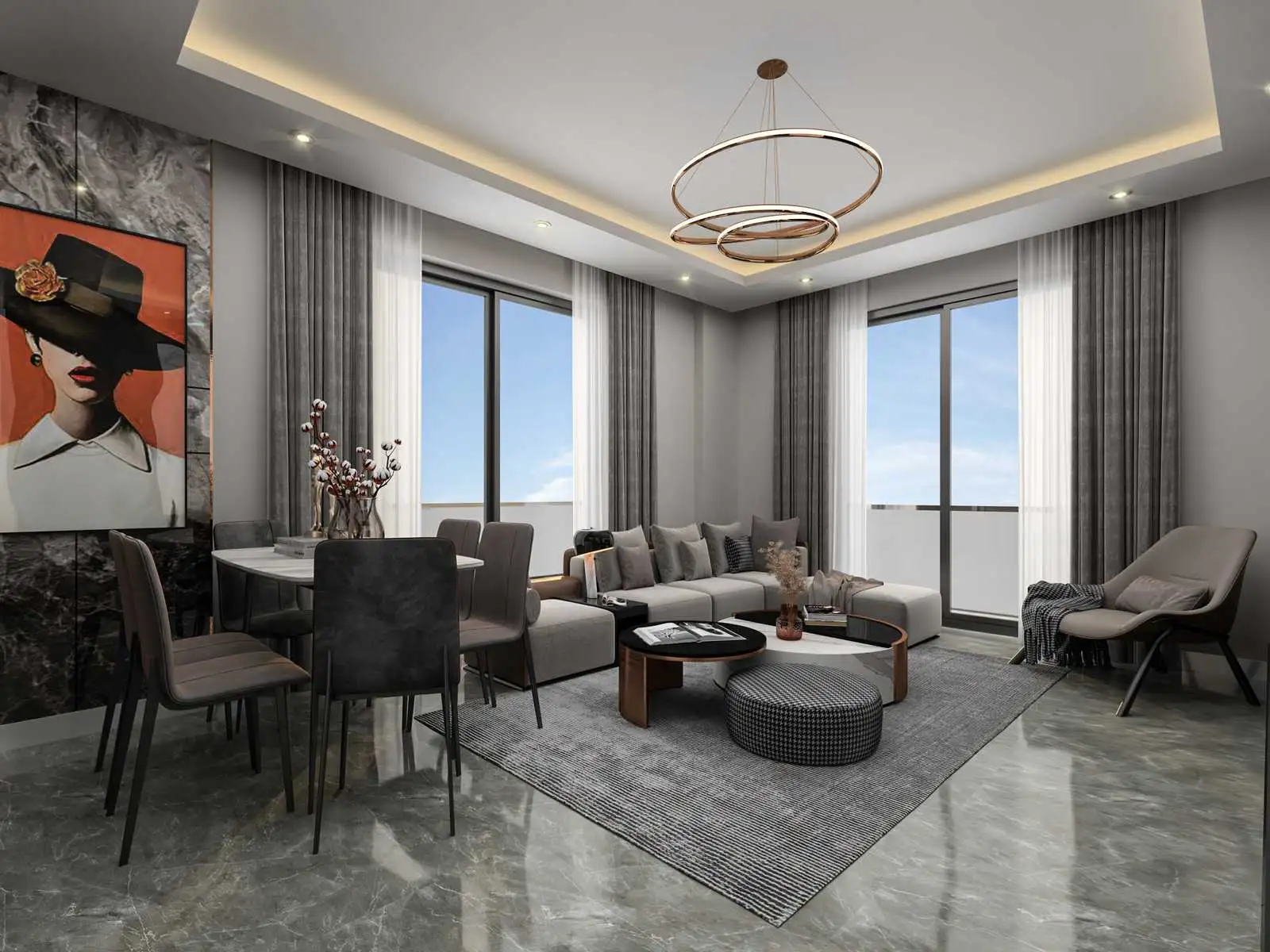 Все квартиры будут сданы с полной чистовой отделкой, выполненной из качественных материалов известных турецких марок. Кухни будут оборудованы кухонным гарнитуром и гранитной столешницей. В ванных комнатах будет установлена душевая кабина. Будет установлена стальная входная дверь и подключен видеодомофон.