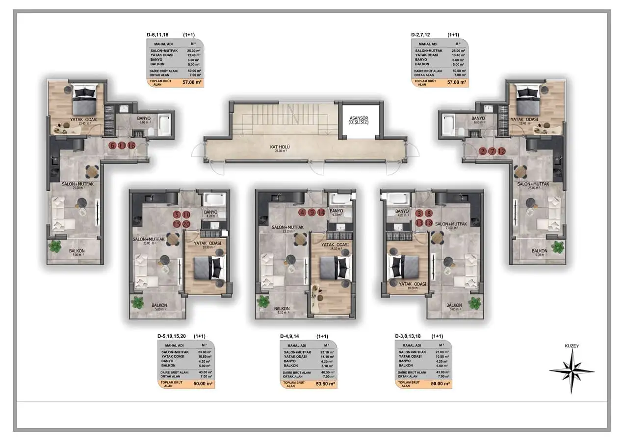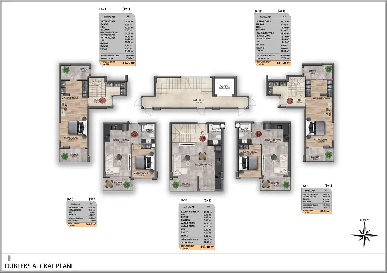 3+1 пентхаусы площадью 164 м2.