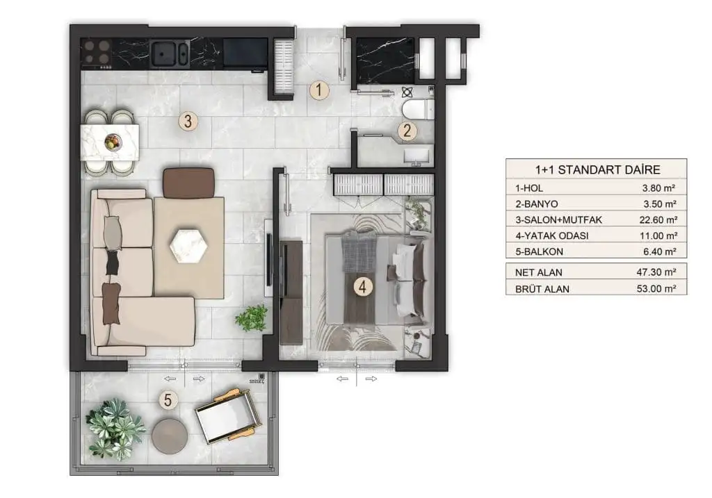 Что вы получаете: Апартаменты в новом комплексе вблизи моря в районе Газипаша.