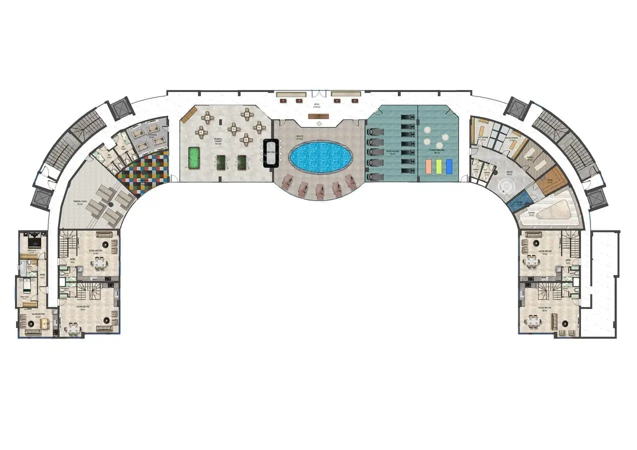 Что в комплексе: Комплекс будет состоять из двух жилых блоков на 94 квартиры и будет располагаться на закрытой территории в 6800 м2. На территории комплекса будет расположен открытый бассейн с водными горками, зона отдыха у бассейна, детская площадка, зона отдыха и барбекю, беседки для отдыха, волейбольная/баскетбольная площадка, теннисный корт, открытая парковка, игровая комната, мини-клуб, кинотеатр, бильярд, настольный теннис, комната отдыха, фитнес, массажная комната, финская сауна, хамам, римская парная, генератор. Территория комплекса будет находиться под круглосуточной охраной.