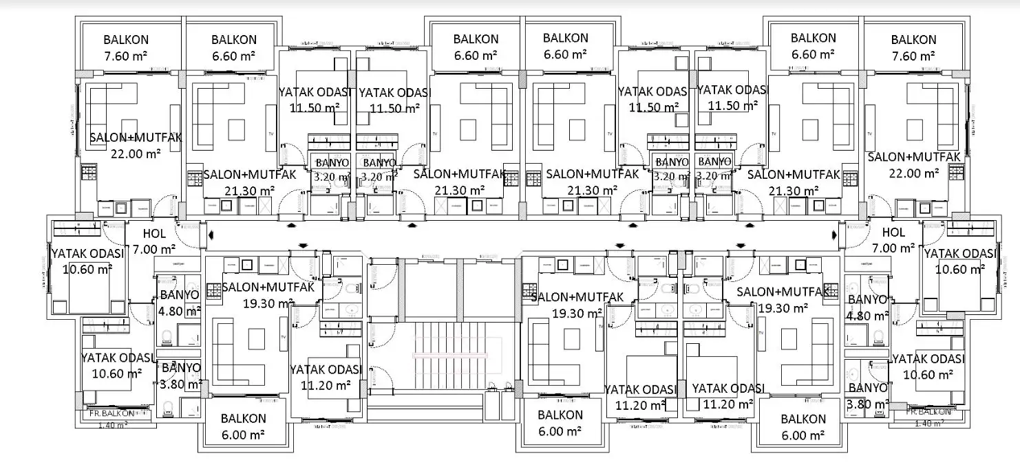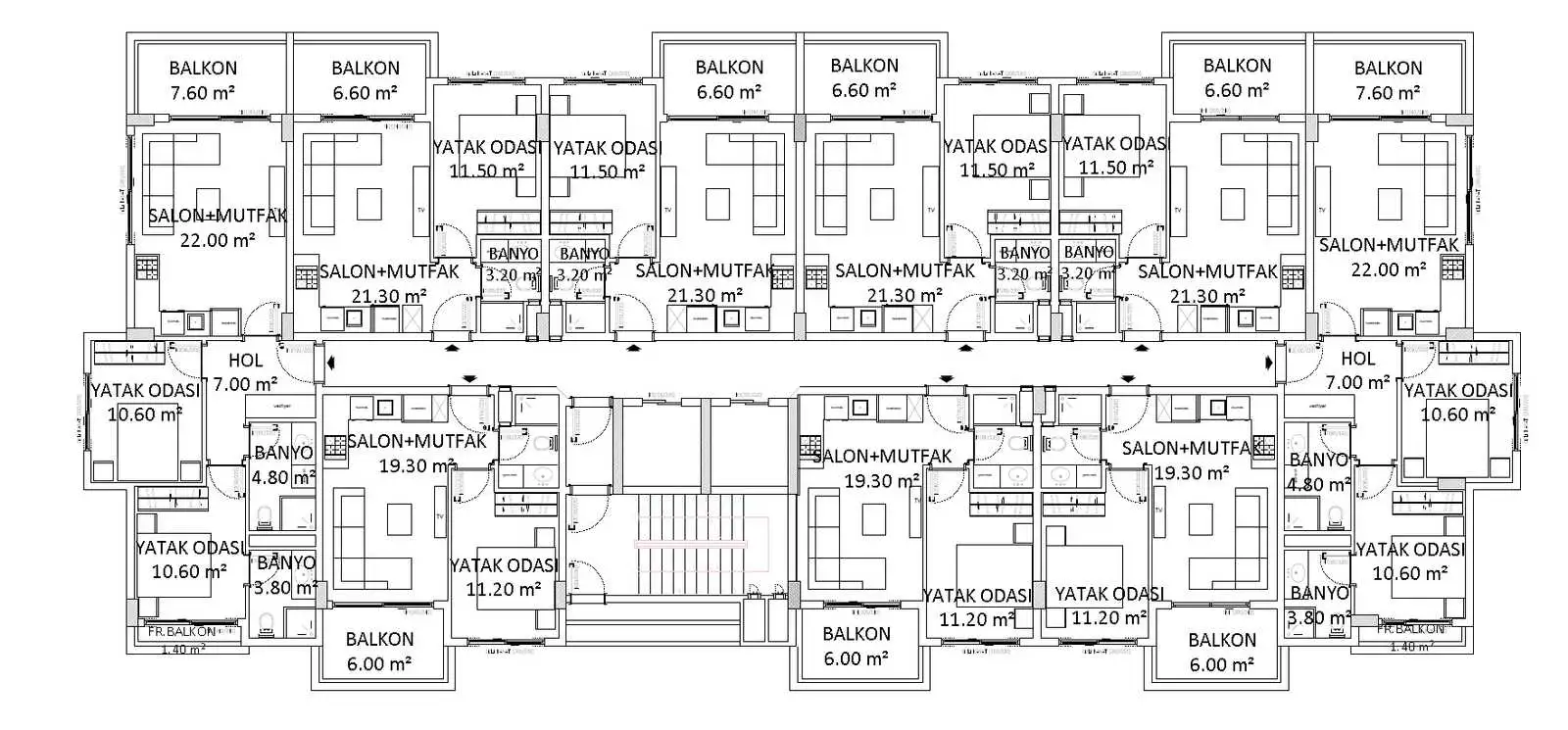 Апартаменты, планировкой 1+1 и 2+1, площадью от 48 до 68 м2,