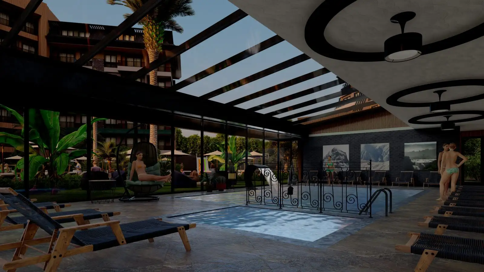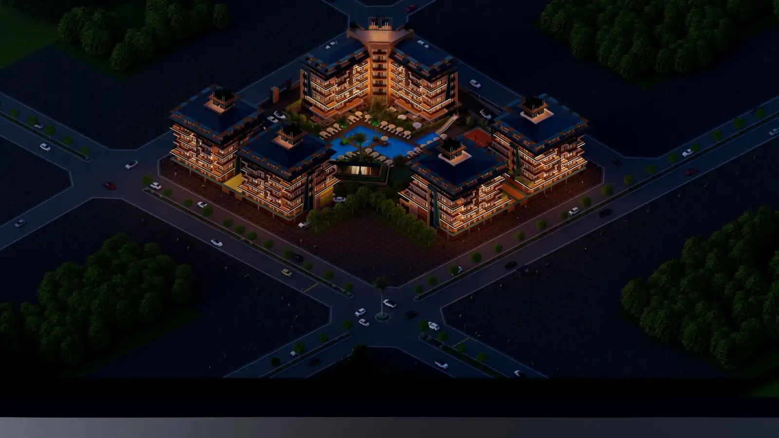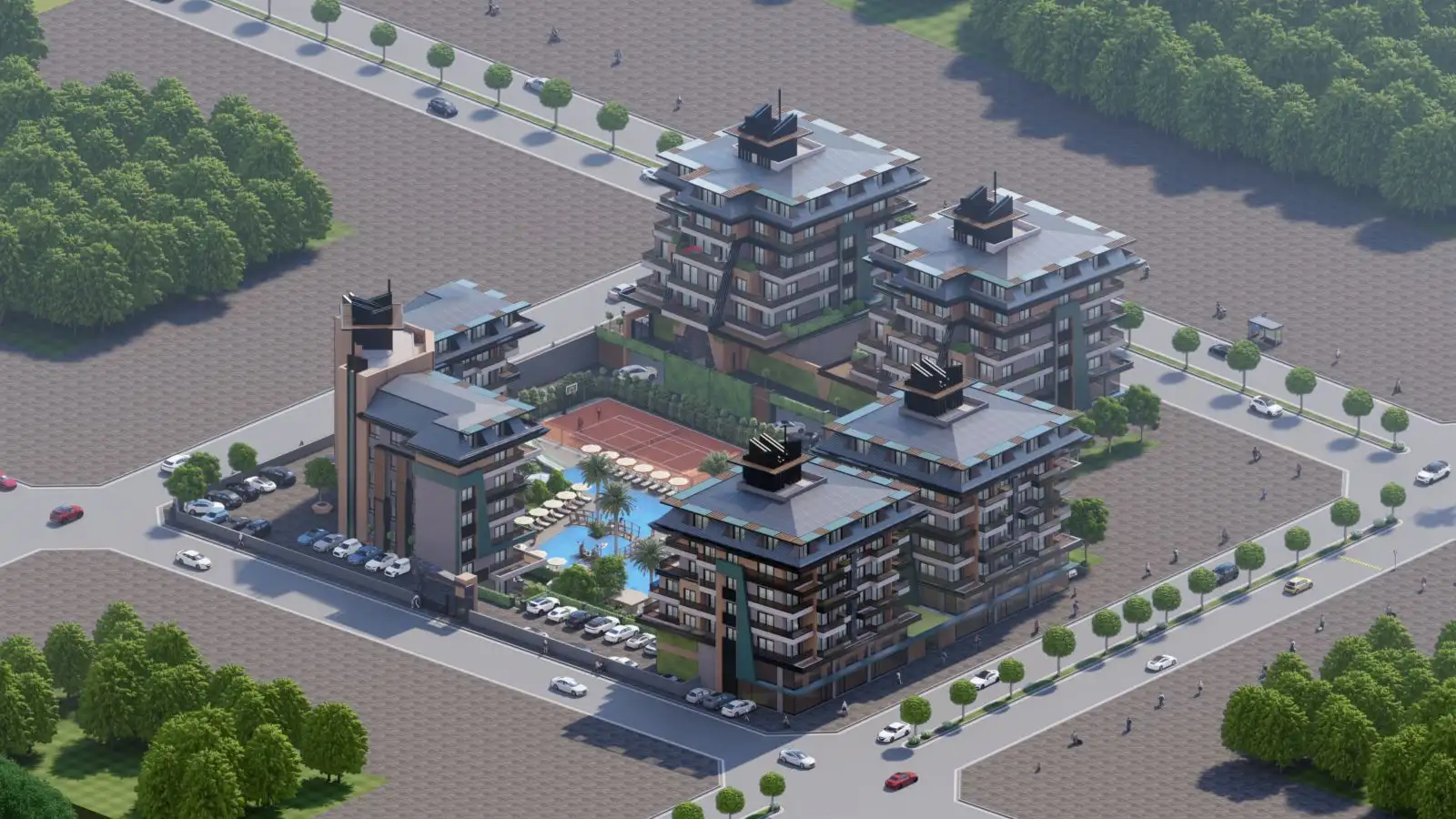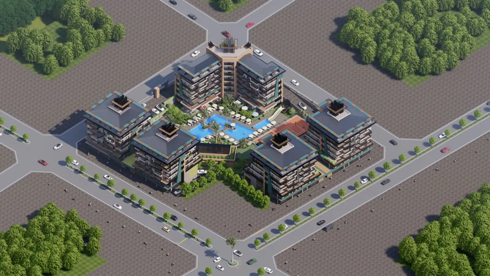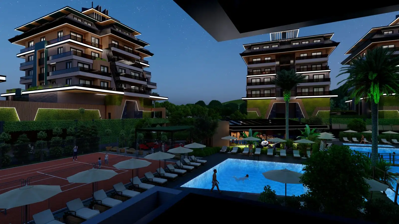 Проект будет иметь развитую инфраструктуру, которая будет доступна гостям и жителям комплекса в любое время года: СПА комплекс с зоной для релакса и массажными комнатами, крытый бассейн, бар, детская игровая зона. На открытой территории комплекса будет расположен открытый плавательный бассейн, зона для барбекю, терраса, детская площадка, теннисный корт и различные зоны для отдыха, а также собственный пляж с кафе. В комплексе будут действовать два паркинга- открытый и закрытый.;