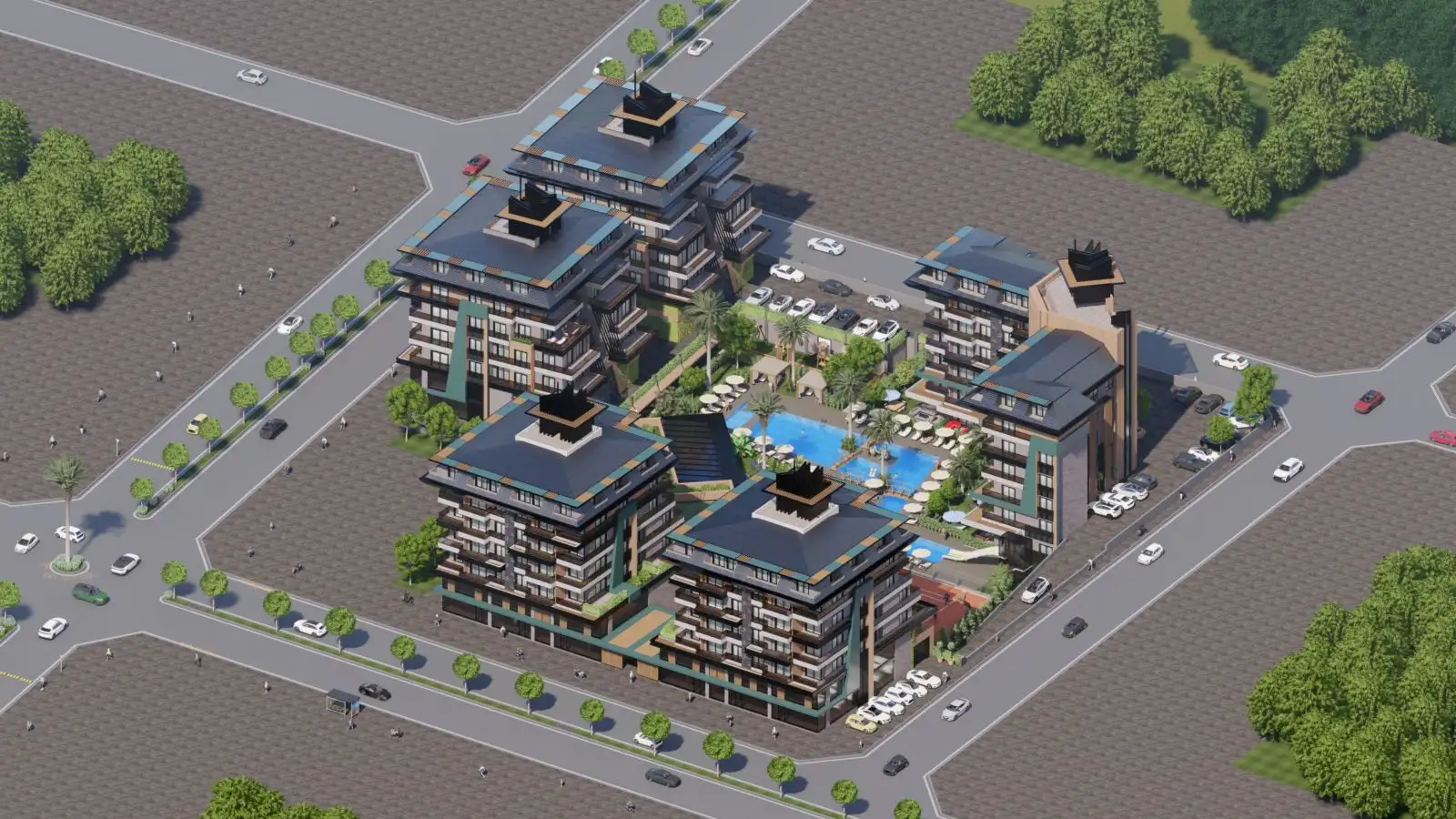 Что в комплексе: Жилой комплекс займет территорию 10.000 м2 и будет состоять из пяти пятиэтажных блоков. Вся территория комплекса будет озеленена декоративными и экзотическими растениями.