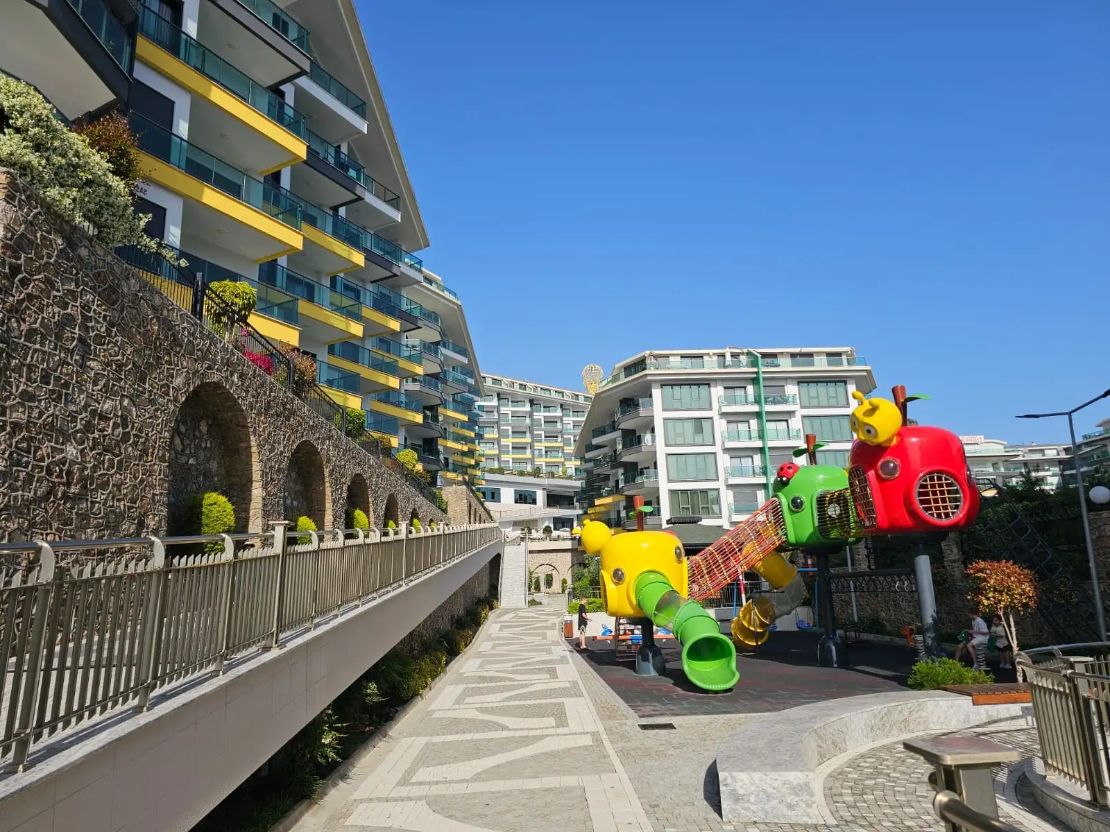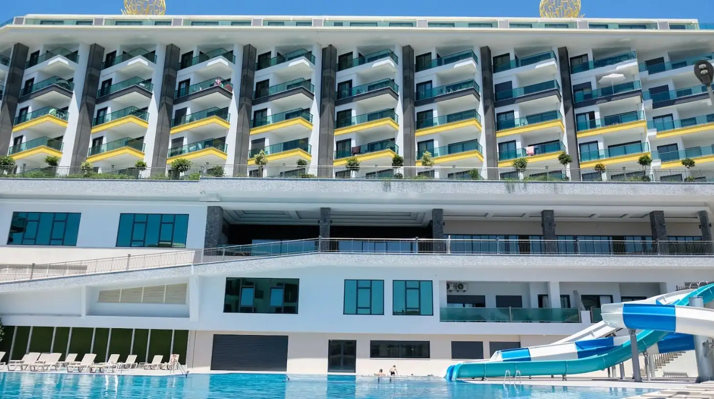 Что в комплексе: Проект занимает территорию площадью 25.000 м² и включает в себя восемь жилых блоков по семь этажей, три эксклюзивные виллы и торговый центр на 2.500 м². На территории расположены два отдельных СПА-комплекса общей площадью 3.500 и 6.000 м² с хаммамами, саунами, массажными кабинетами и крытыми бассейнами. Жителям также доступны открытые бассейны, фитнес-залы, рестораны, зоны барбекю, детские площадки, лаунж-пространства и просторные зоны отдыха.