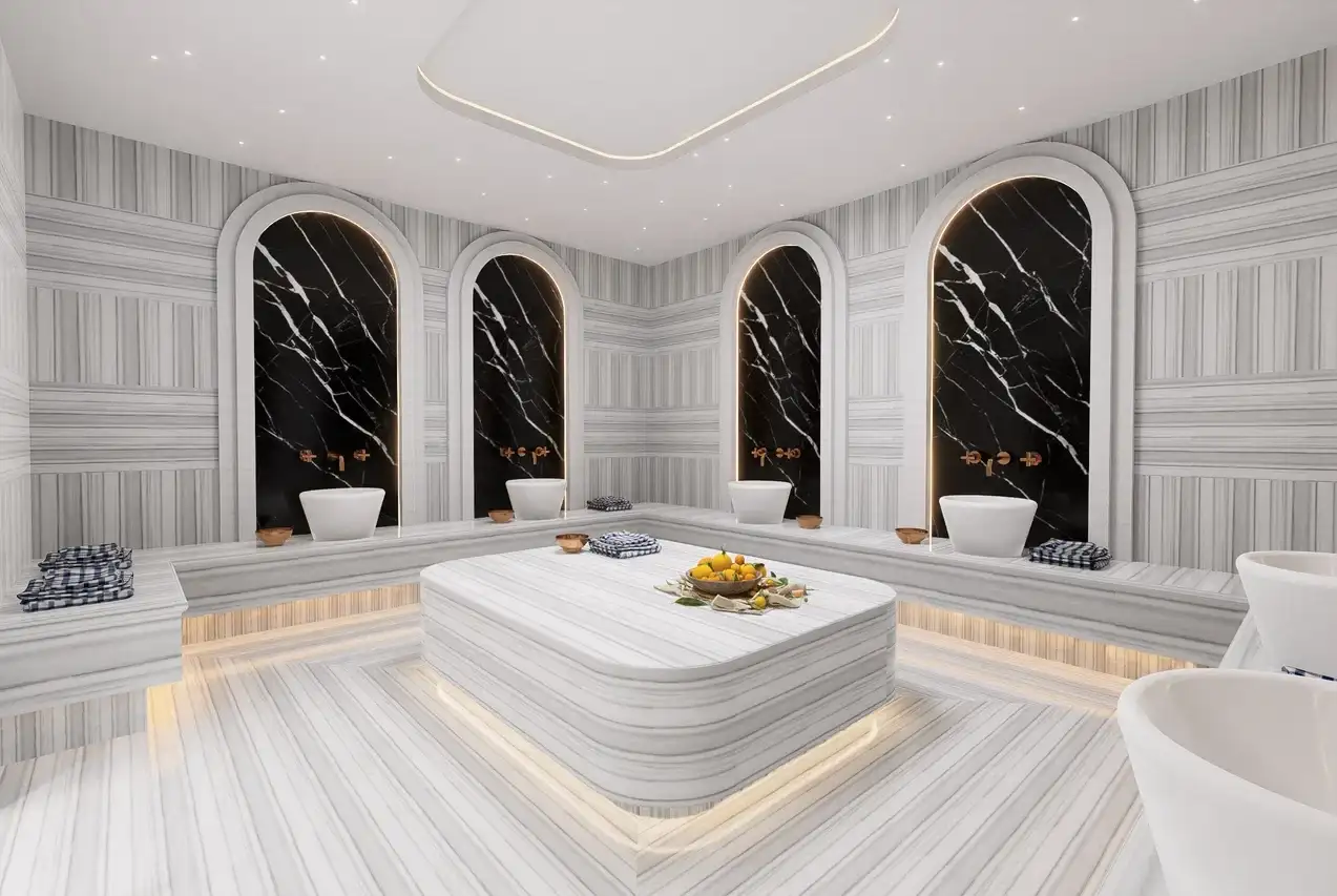 Что в комплексе: Инфраструктура проекта включает: открытый плавательный бассейн, крытый бассейн с подогревом, детская площадка и игровая комната, сауна, турецкая баня (хамам), римская парная, лобби, открытый и крытый паркинг, теннисный корт, генератор.