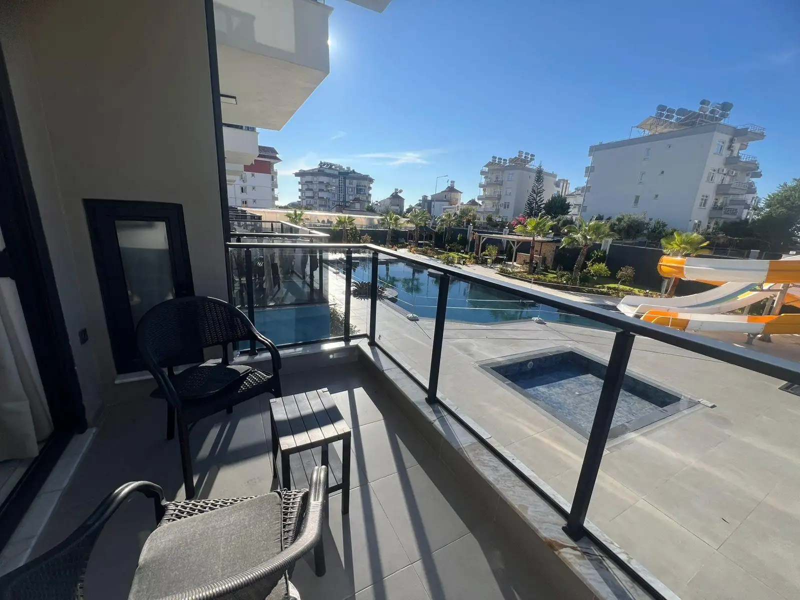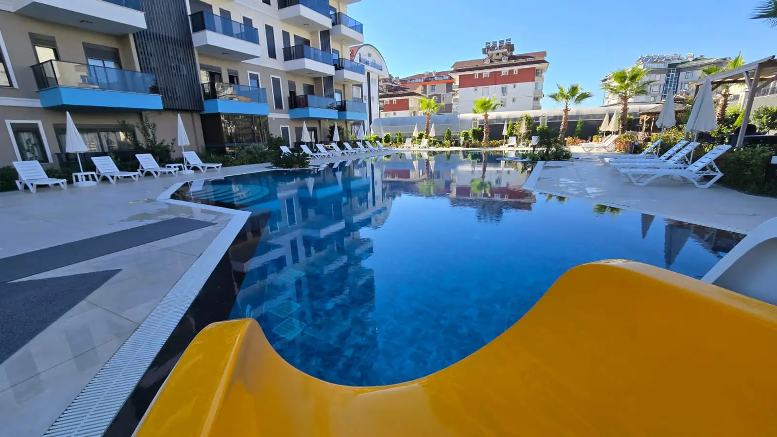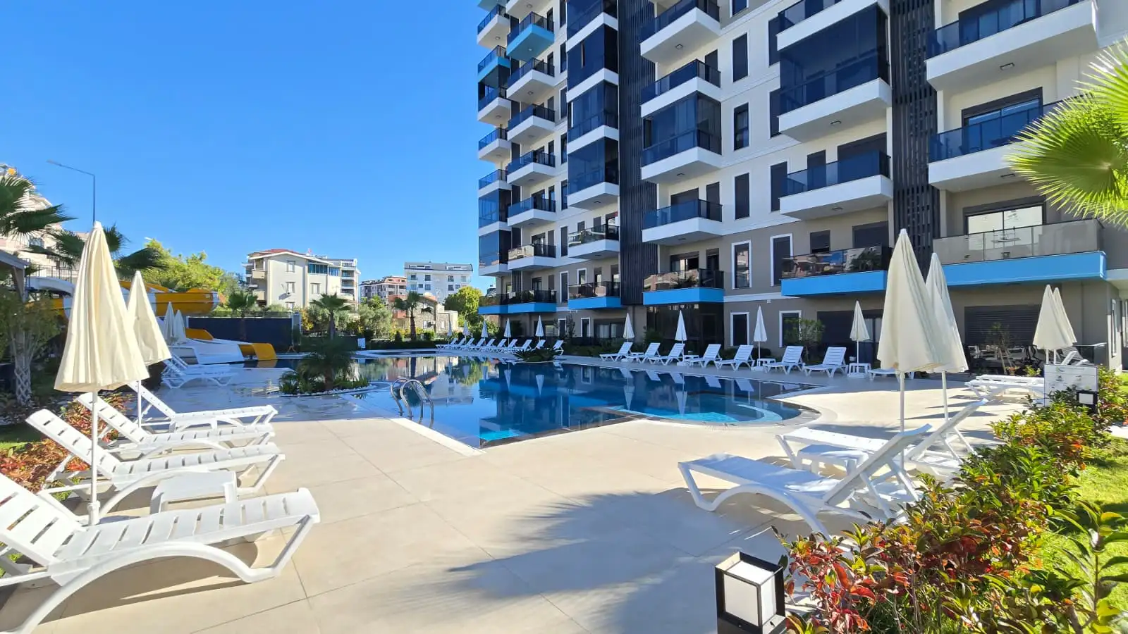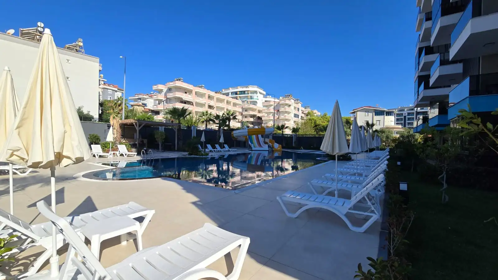Комплекс с полной инфраструктурой для комфортной жизни: бассейн, парковка, ухоженная зелёная территория и зоны отдыха. Территория продумана и поддерживается в отличном состоянии, создавая ощущение курортного проживания.
