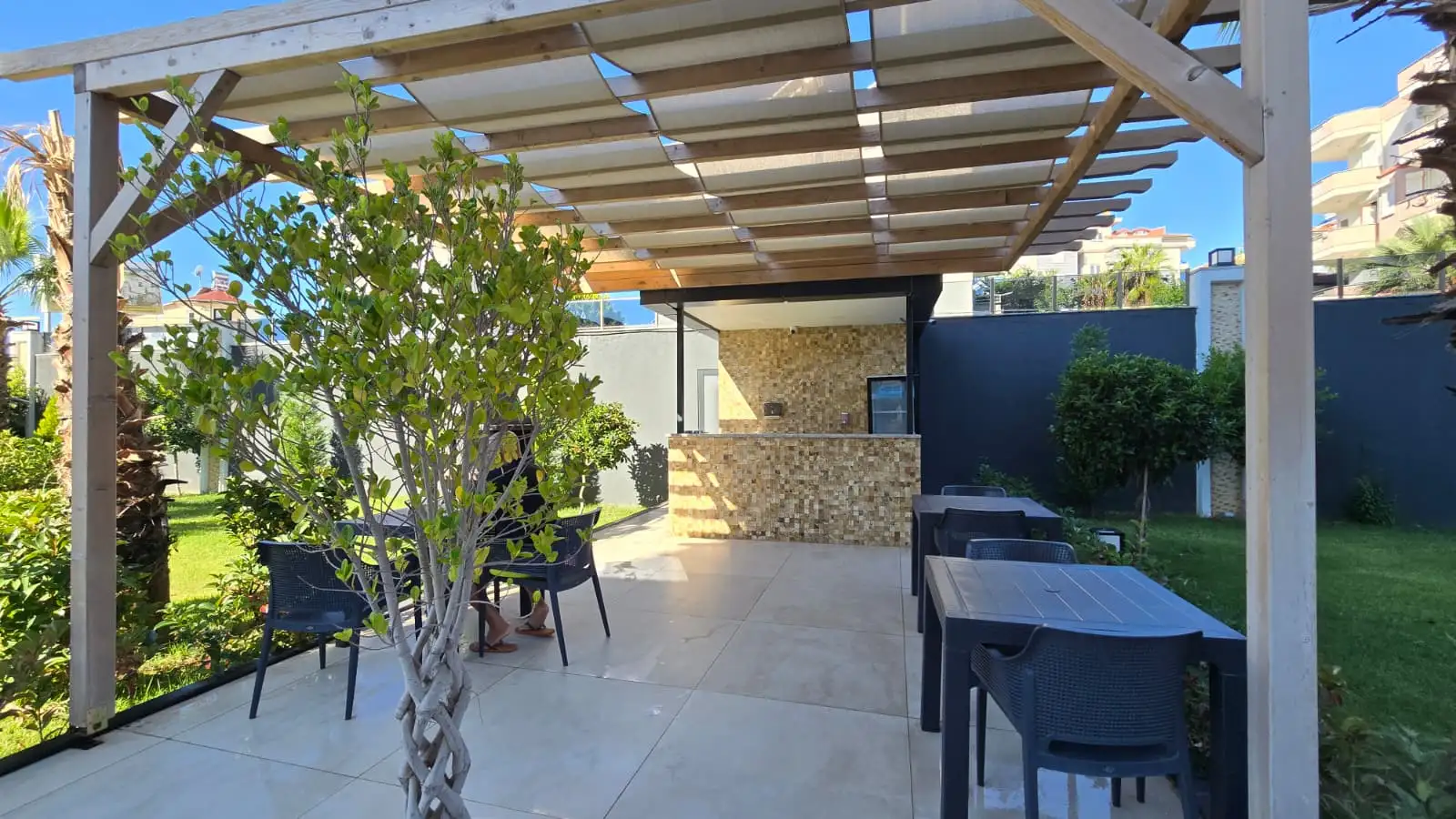 В пешей доступности находятся супермаркеты, магазины, кафе, рестораны, аптеки и остановки общественного транспорта. Район хорошо развит и подходит как для круглогодичного проживания, так и для аренды в сезон.