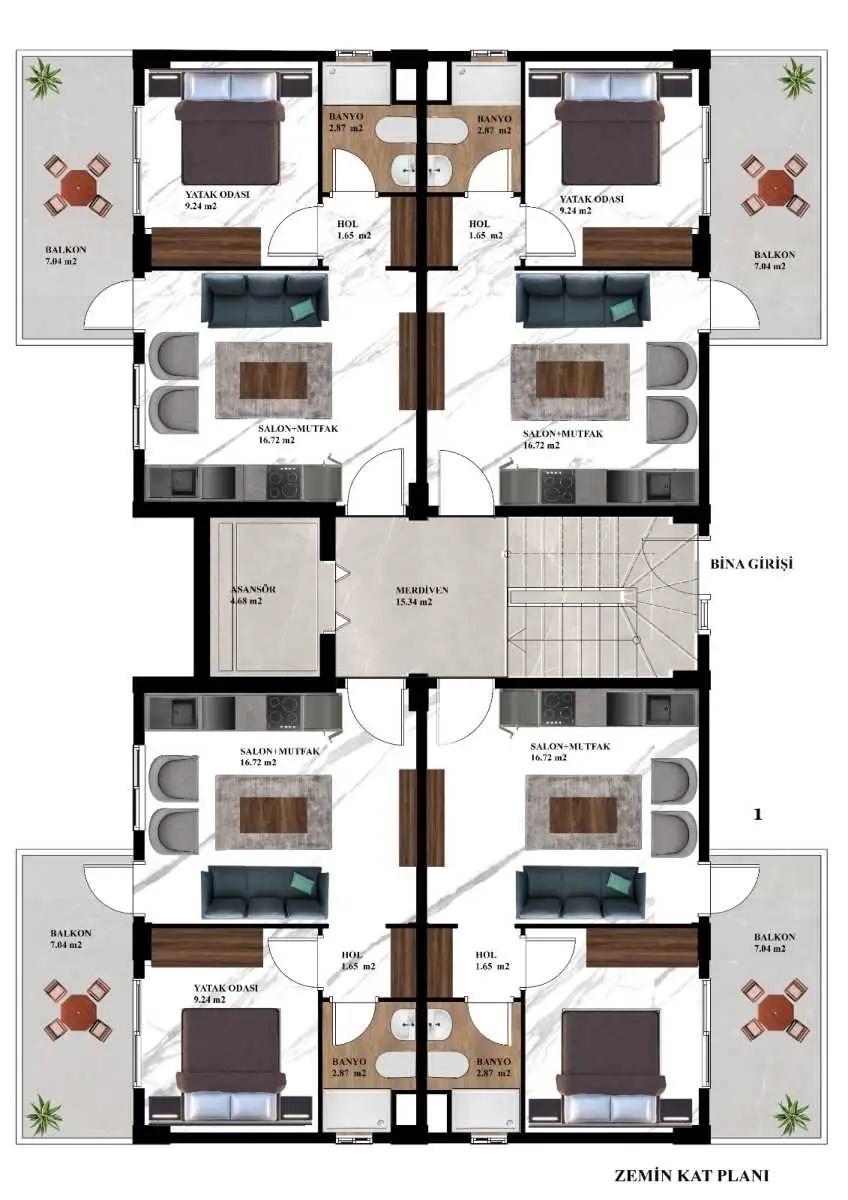 Что вы получаете: Апартаменты 1+1 в новом комплексе в центре района Авсаллар, Алания.