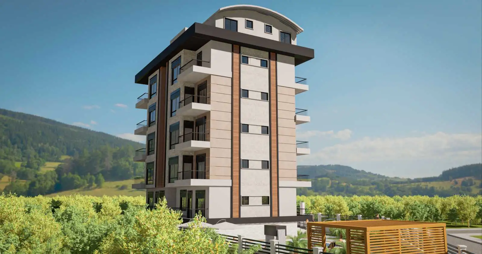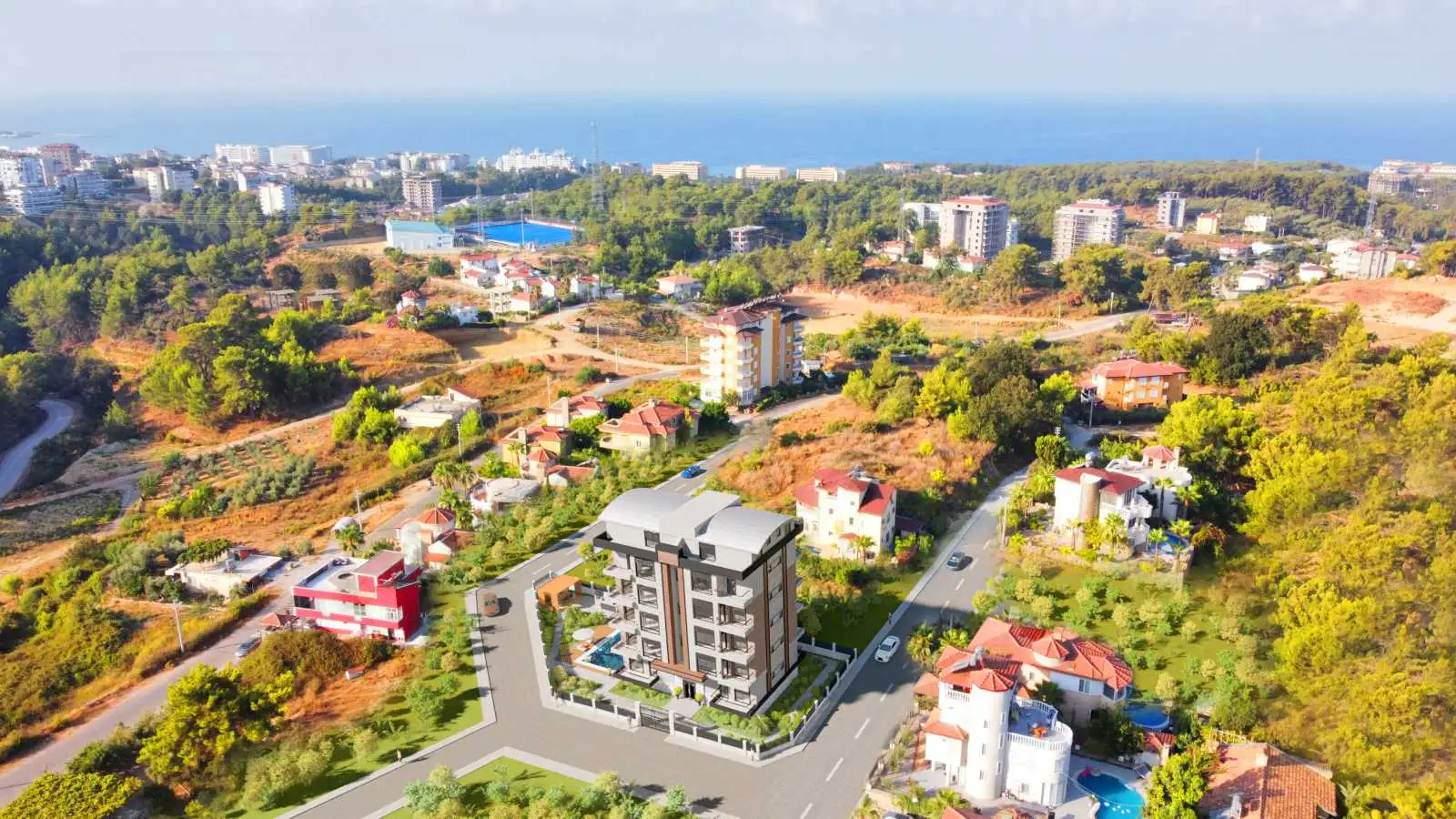 Новый жилой комплекс расположен в центральной части района, в одном километре от моря. В районе имеются все необходимые магазины, рынок, рестораны и кафе, почтовое отделение, школа.