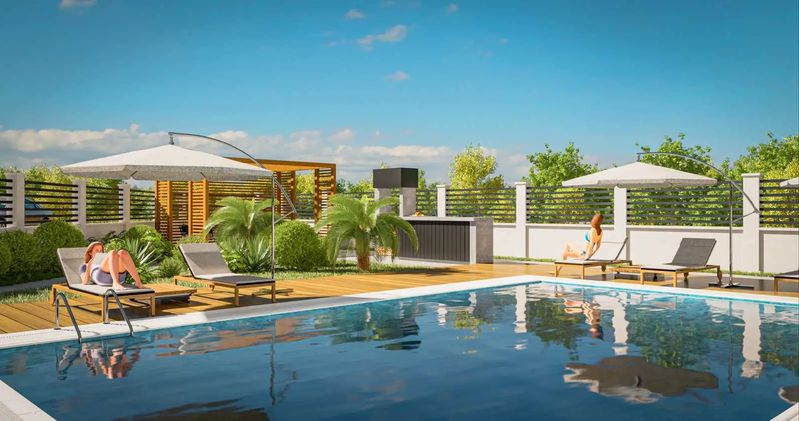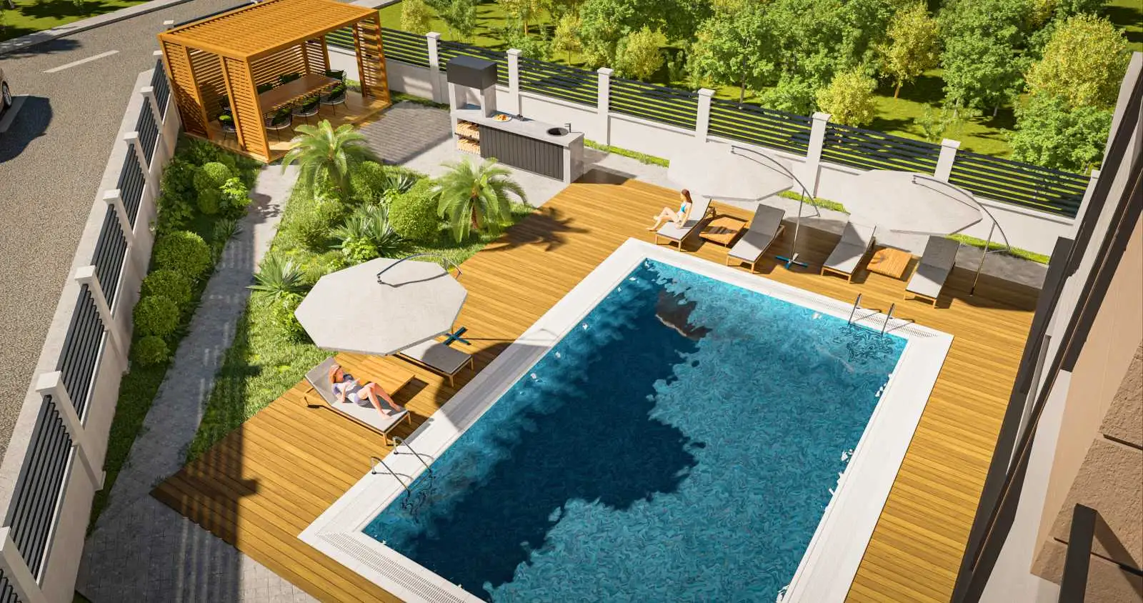 Жильцам и гостям комплекса будут доступны: открытый бассейн 36 м2, спорт зал, финская сауна, детская площадка, зоны барбекю, автопарковка, бесплатный шаттл до моря.;