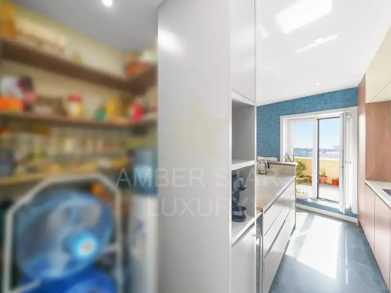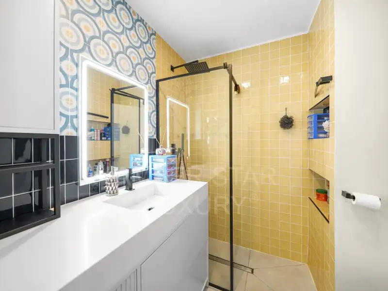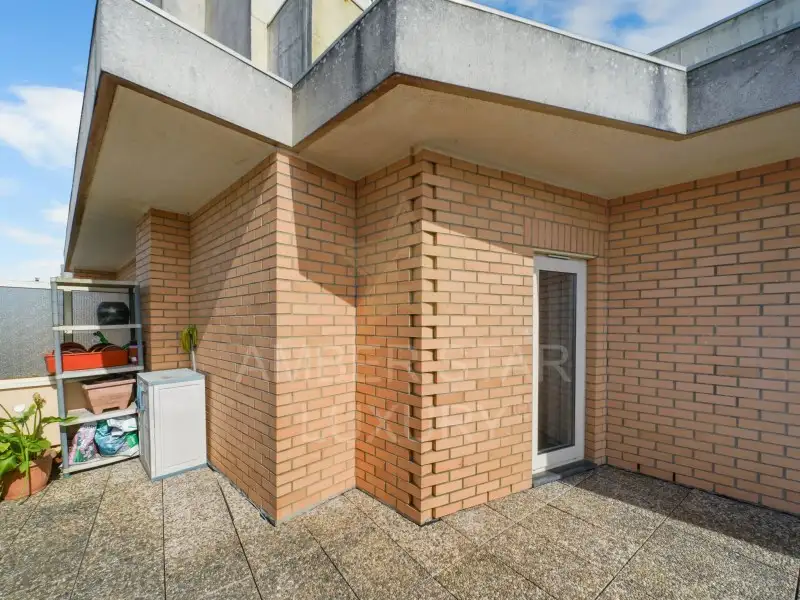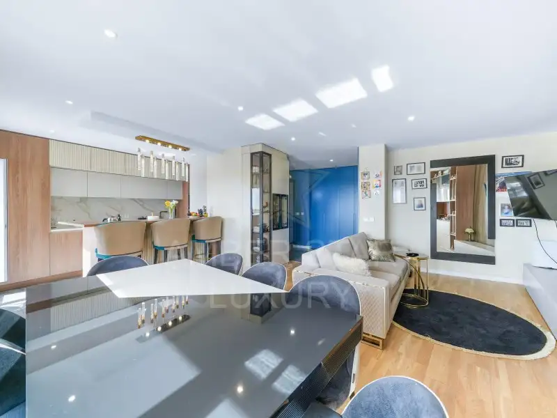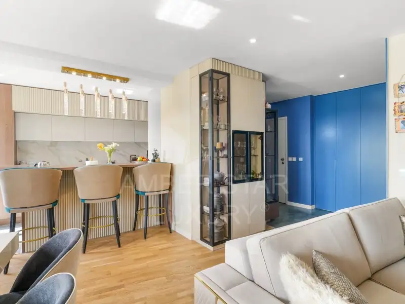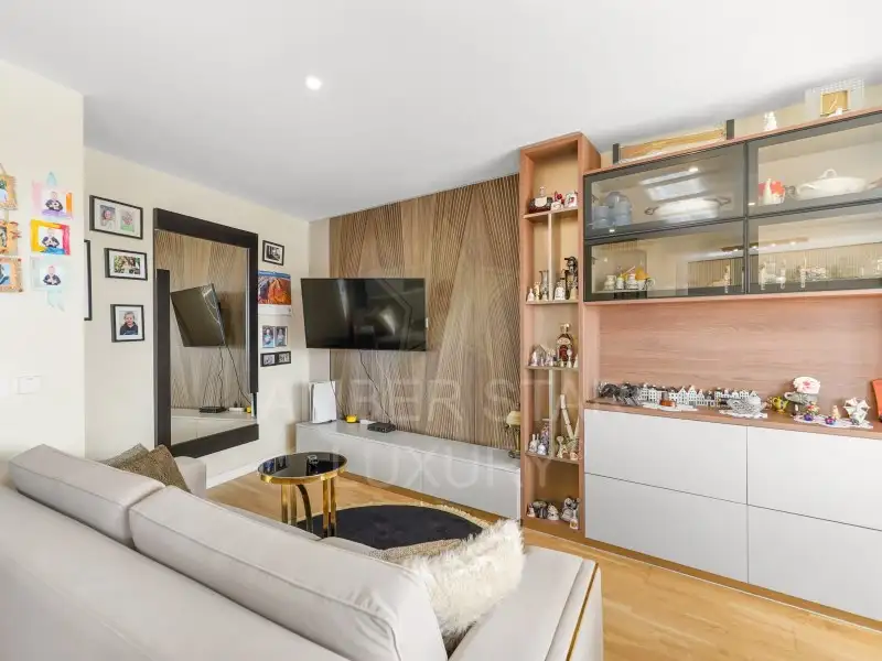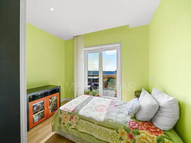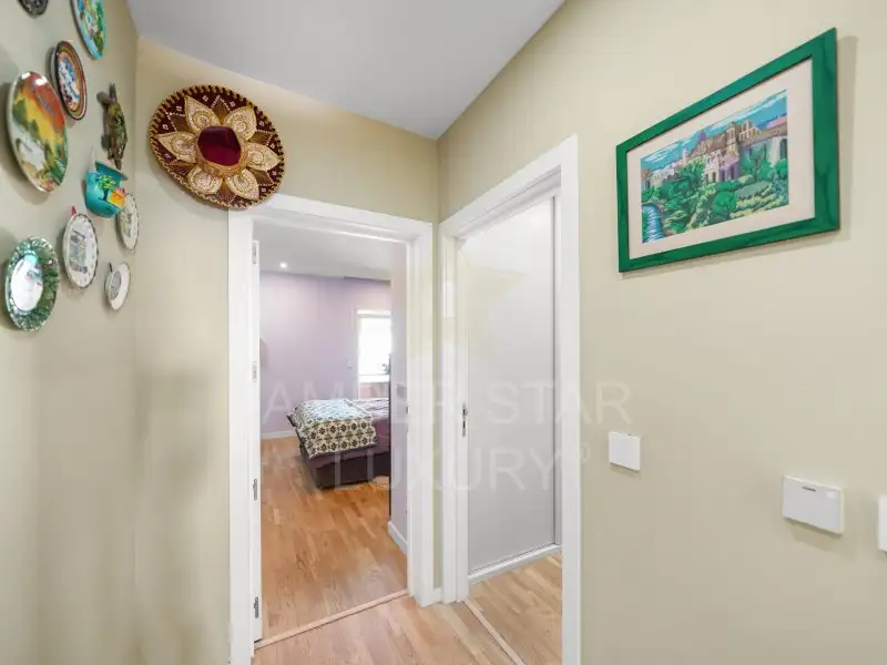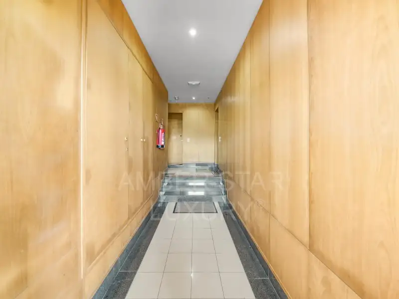 Эта квартира, расположенная на последнем этаже и обслуживаемая лифтом, оборудована окнами из ПВХ с двойным остеклением, системой подогрева пола и деревянным полом.