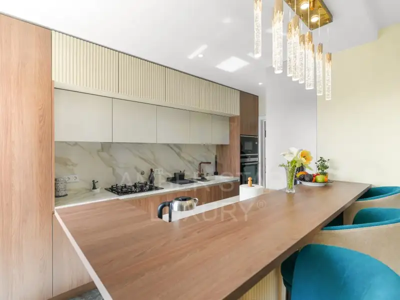 - Полностью оборудованная кухня открытой планировки;