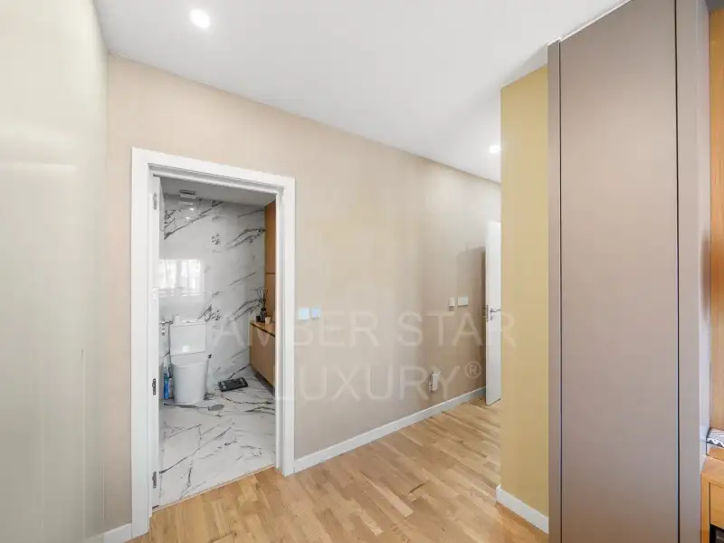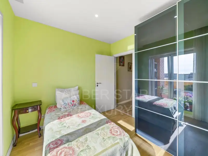 Кроме того, в квартире 2 спальни, выходящие на восток, а также гостиная, кухня и 2 спальни, выходящие на запад. Общая жилая площадь составляет 147 м2, в комплекте гараж.