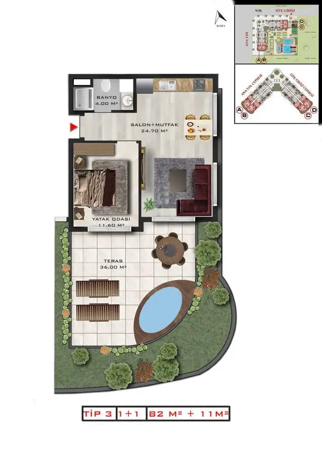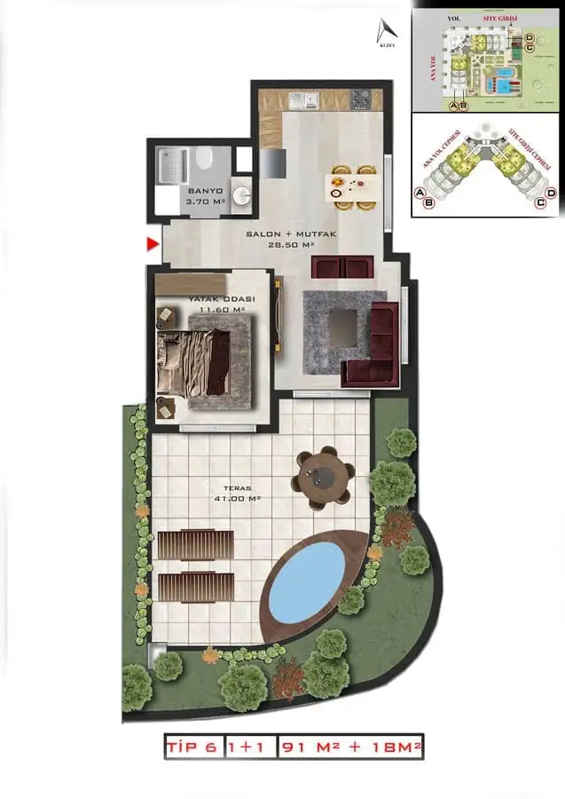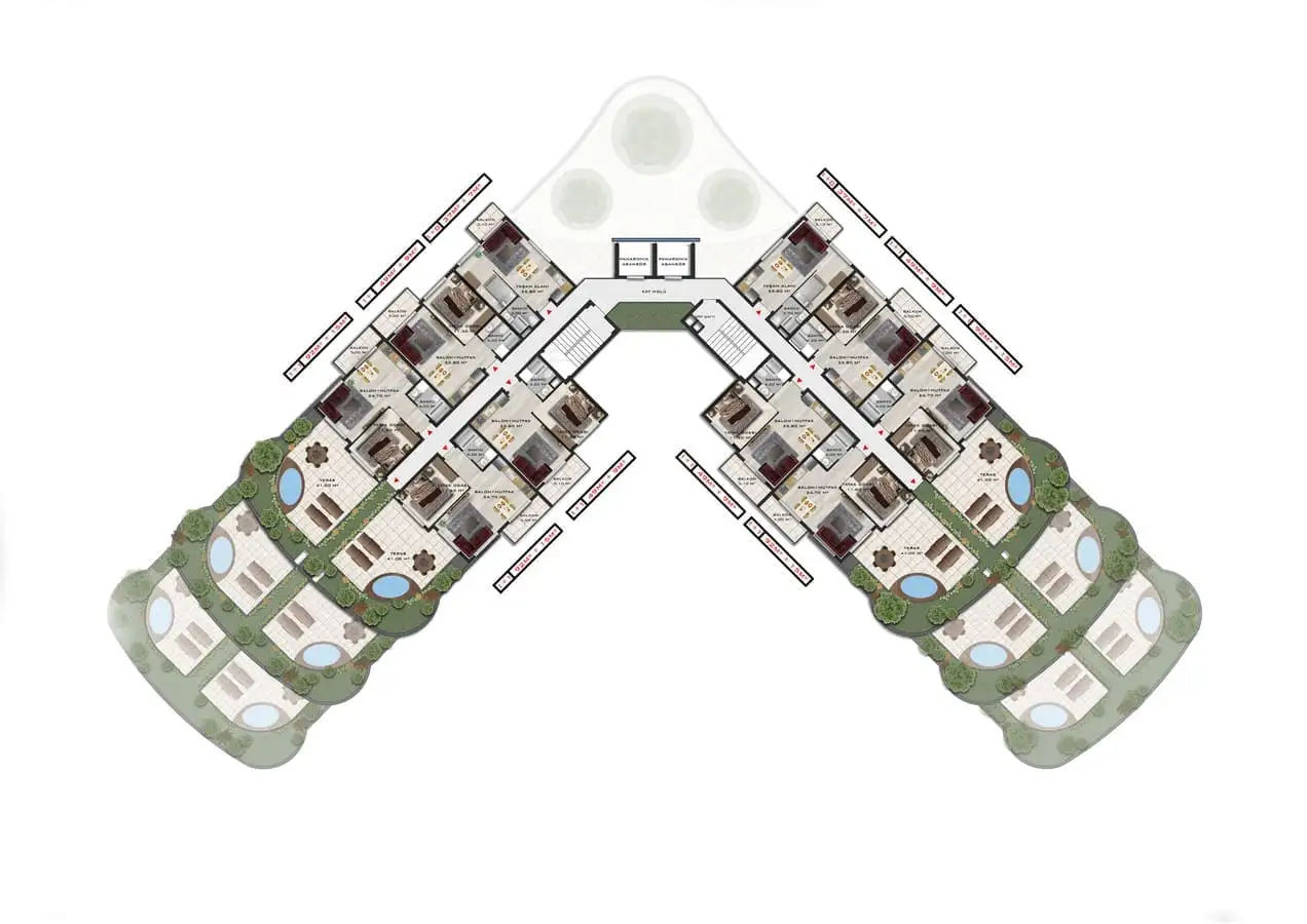 1+1 с террасой площадью от 82 м² по 93 м²;