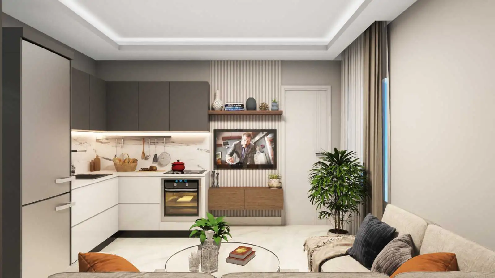 Что в комплексе: Проект строится в шаговой доступности от пляжа Клеопатра, в самом центре Алании. Территория комплекса будет украшена цветами и разнообразными растениями – апельсинами, оливками, кипарисами и пальмами. Разбит ландшафтный сад, где размещается детская площадка для игр и беседка для отдыха и зона барбекю.; В центре комплекса будет расположен летний бассейн и терраса для загара.;