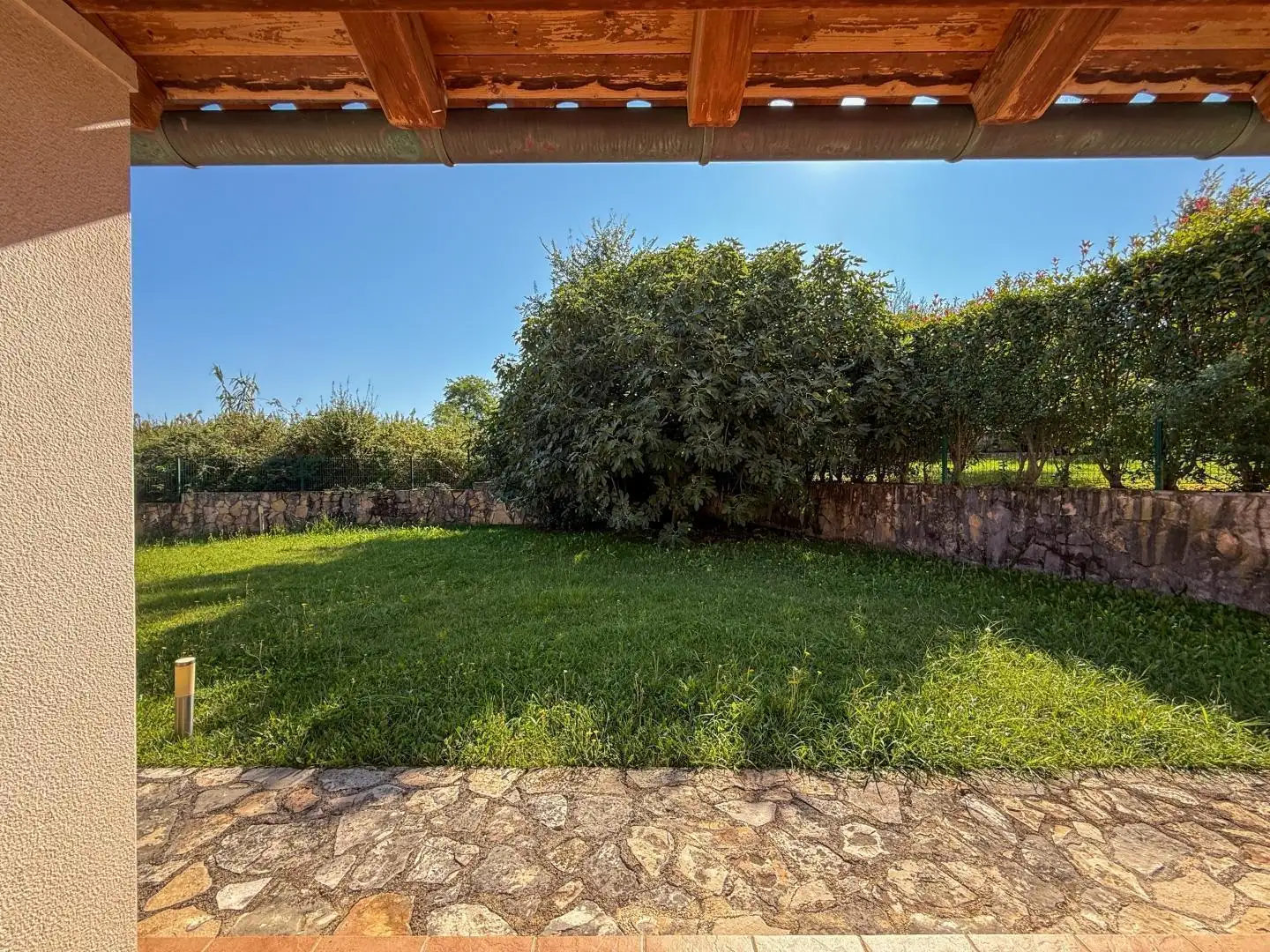 Одной из самых привлекательных особенностей виллы является просторная крытая терраса, расположенная на задней стороне недвижимости, с видом на зелень и обеспечивающая полную приватность и спокойствие.