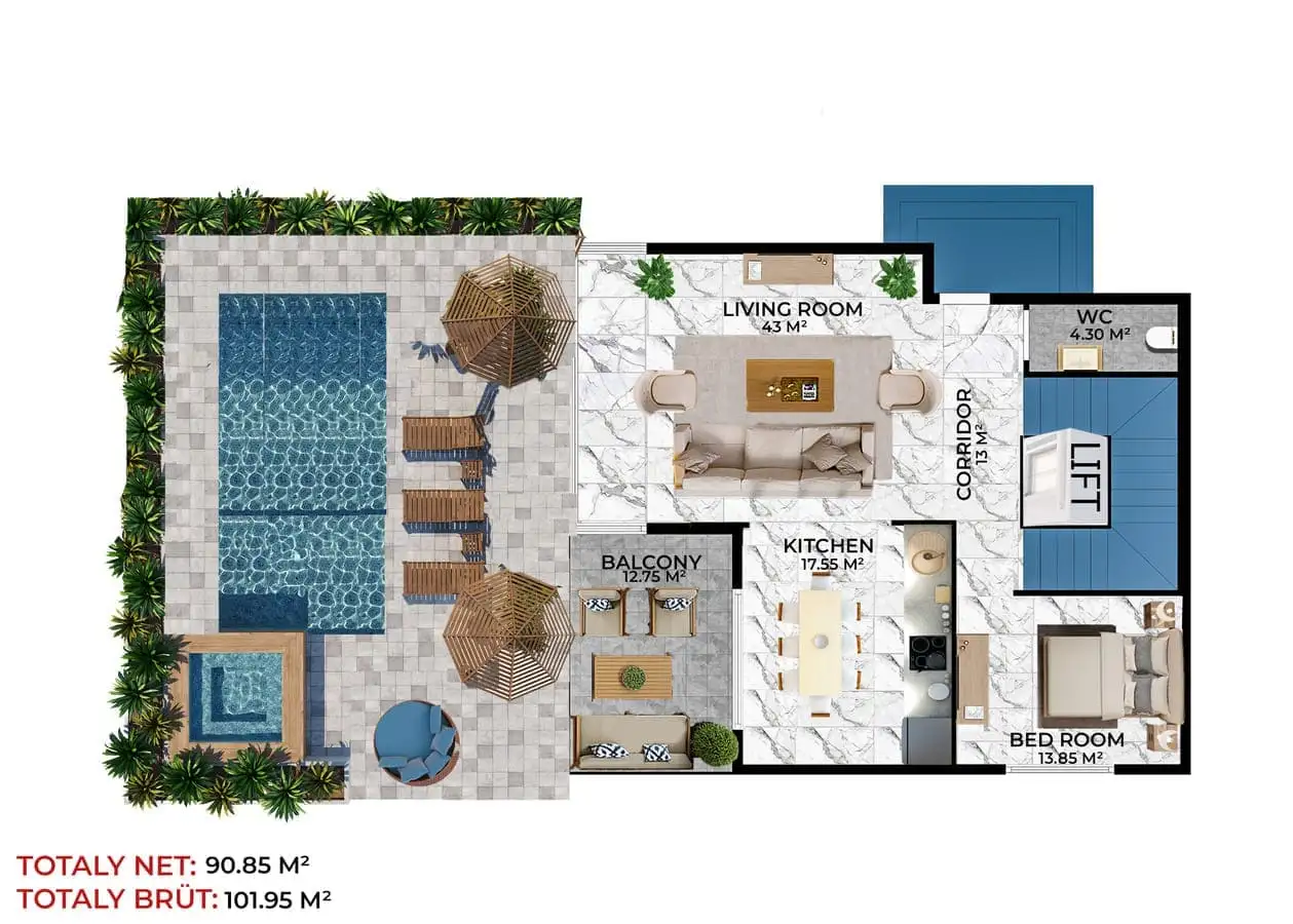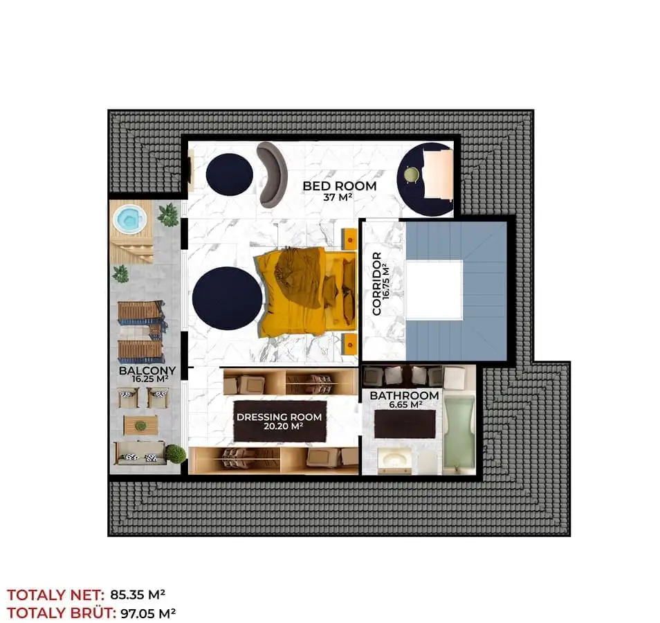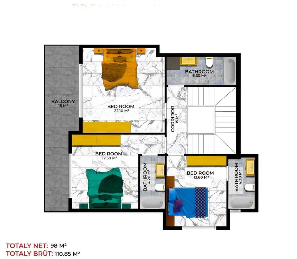 Доступны виллы планировкой 4+1 площадью 260 м2 и виллы планировкой 5+1 площадью 350 м2.