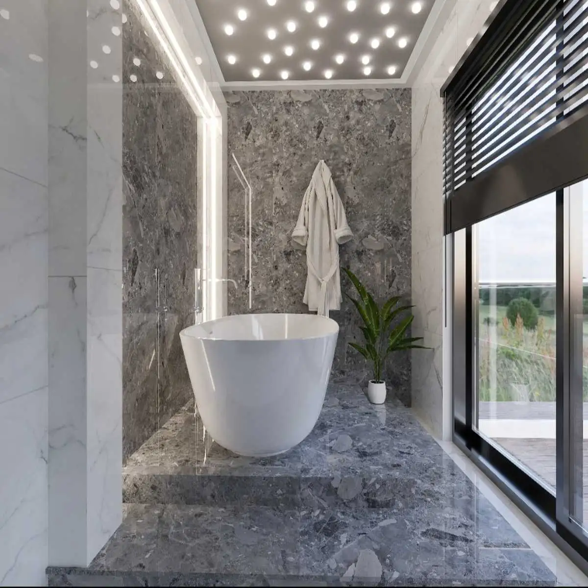 Во всех помещениях будет произведен современный ремонт из экологически чистых и прочных материалов: керамики, гранита и алюминия. Квартиры и виллы будут сдаваться с чистовой отделкой, будут полностью оборудованы ванные комнаты, в кухнях будет установлен кухонный гарнитур, сантехника и столешница из гранита.