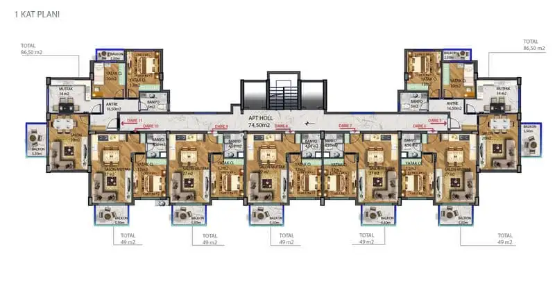 Что вы получаете: Апартаменты 1+1 и 2+1 в новом комплексе, в районе Газипаша.