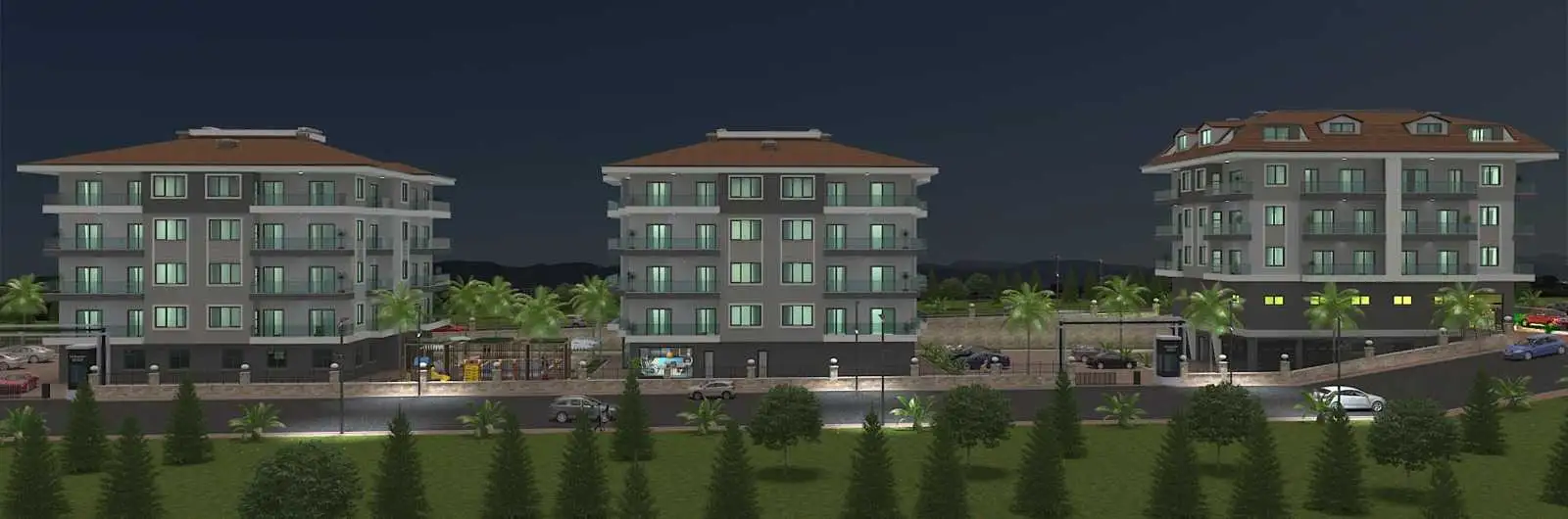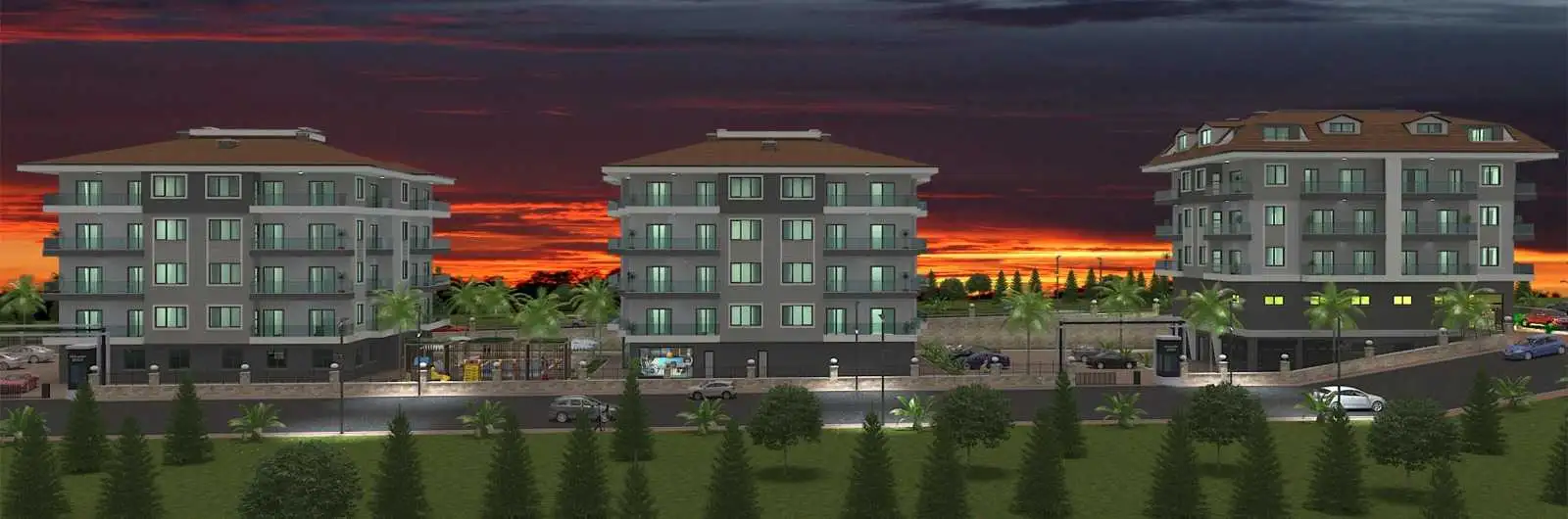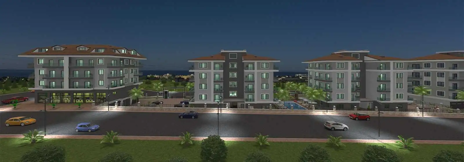 Что в комплексе: Комплекс будет состоять из трех жилых домов с апартаментами, пентхаусами и магазинами. В комплексе будут расположены все необходимое для проживания и отдыха: бассейн, спорт зал, детская площадка, зона барбекю, зоны отдыха в саду, парковка.