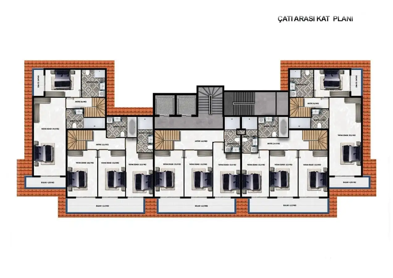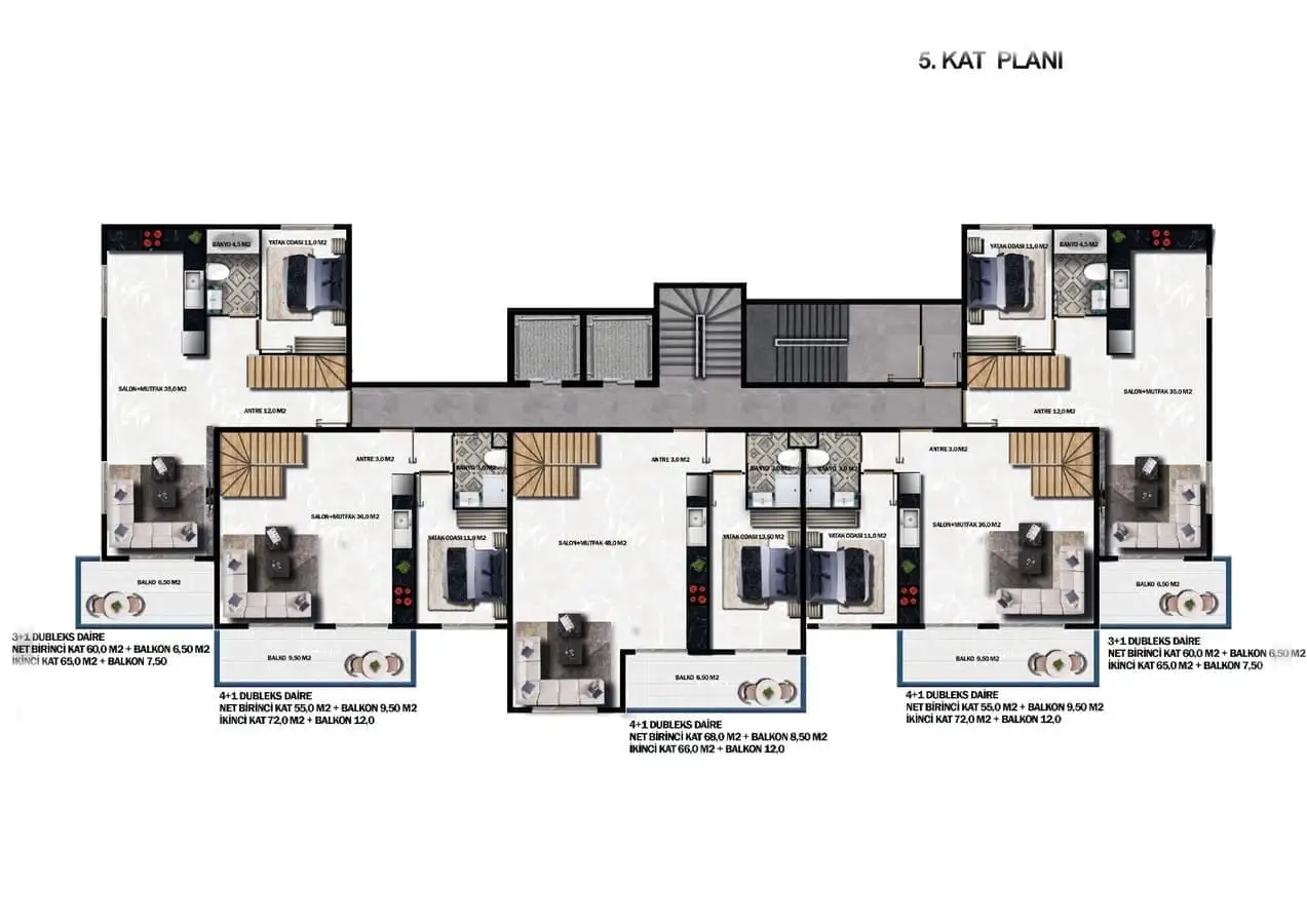 4+1 пентхаусы площадью 148 м2 и 154,5 м2.