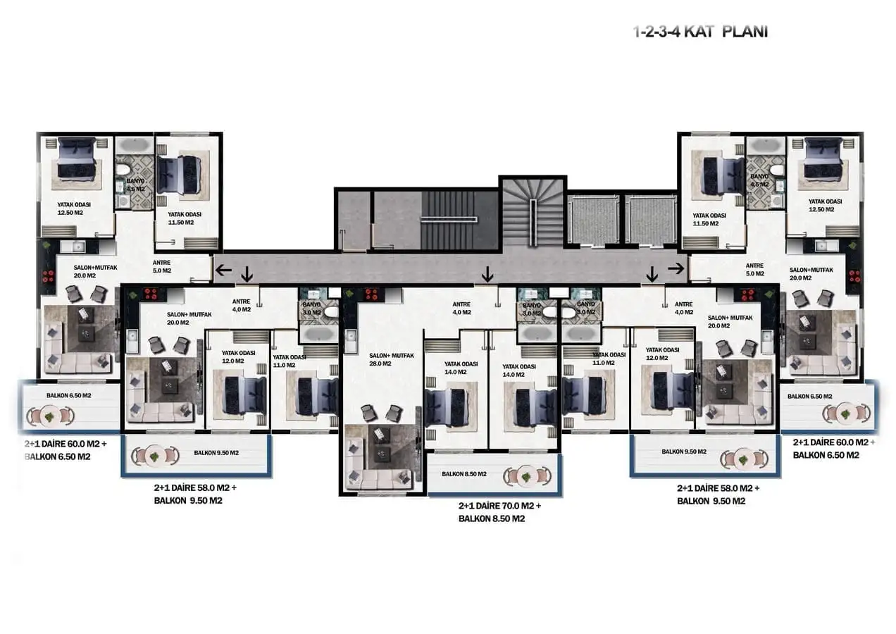 Кому может быть интересным: Апартаменты в развивающемся районе Демирташ, для инвестиций, на стадии строительства, дешевле рыночной цены, близко к центру Алании, аэропорту.