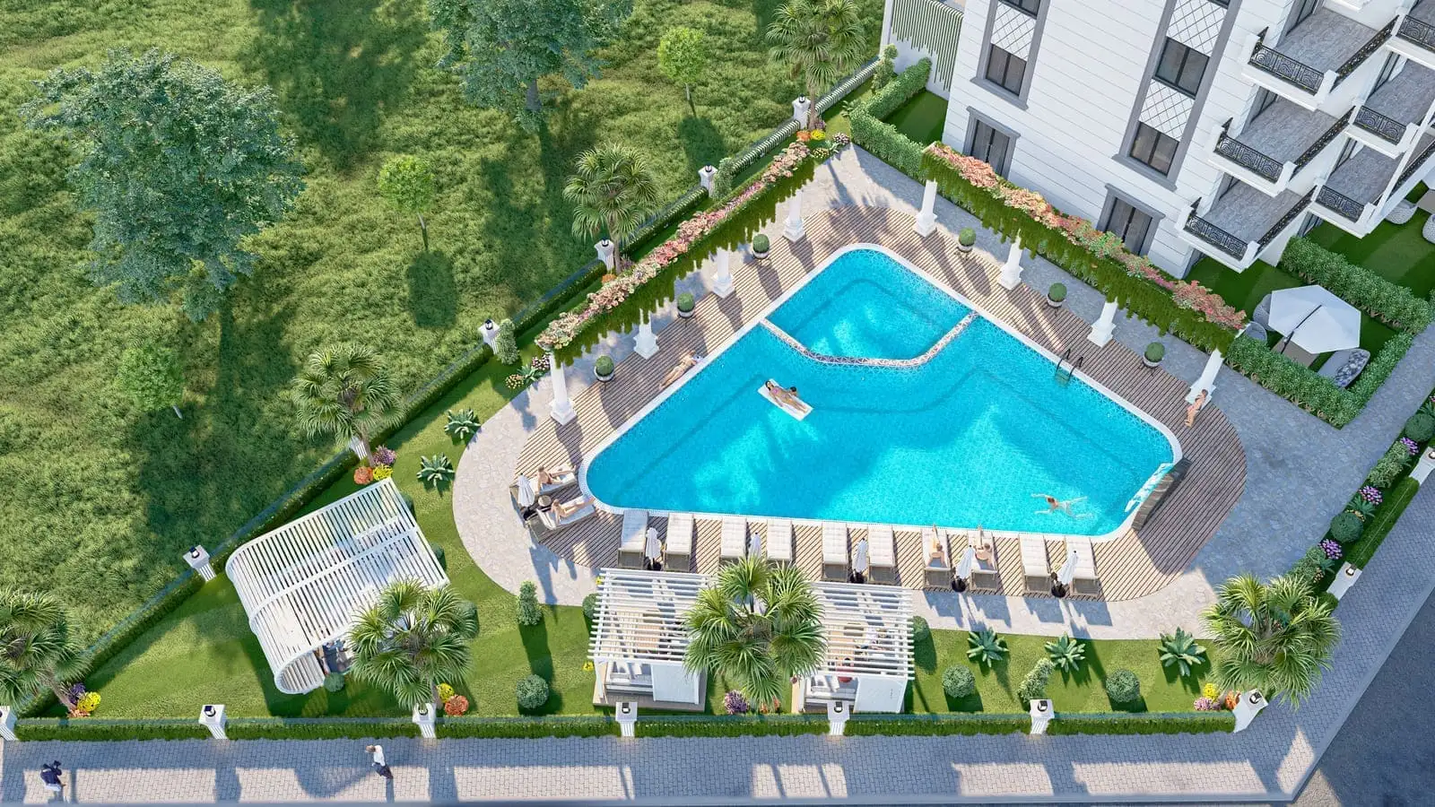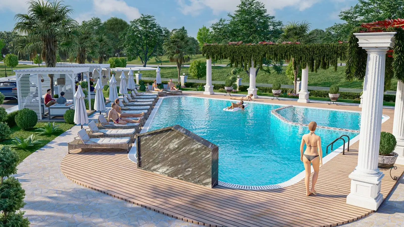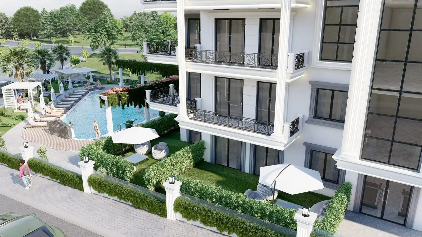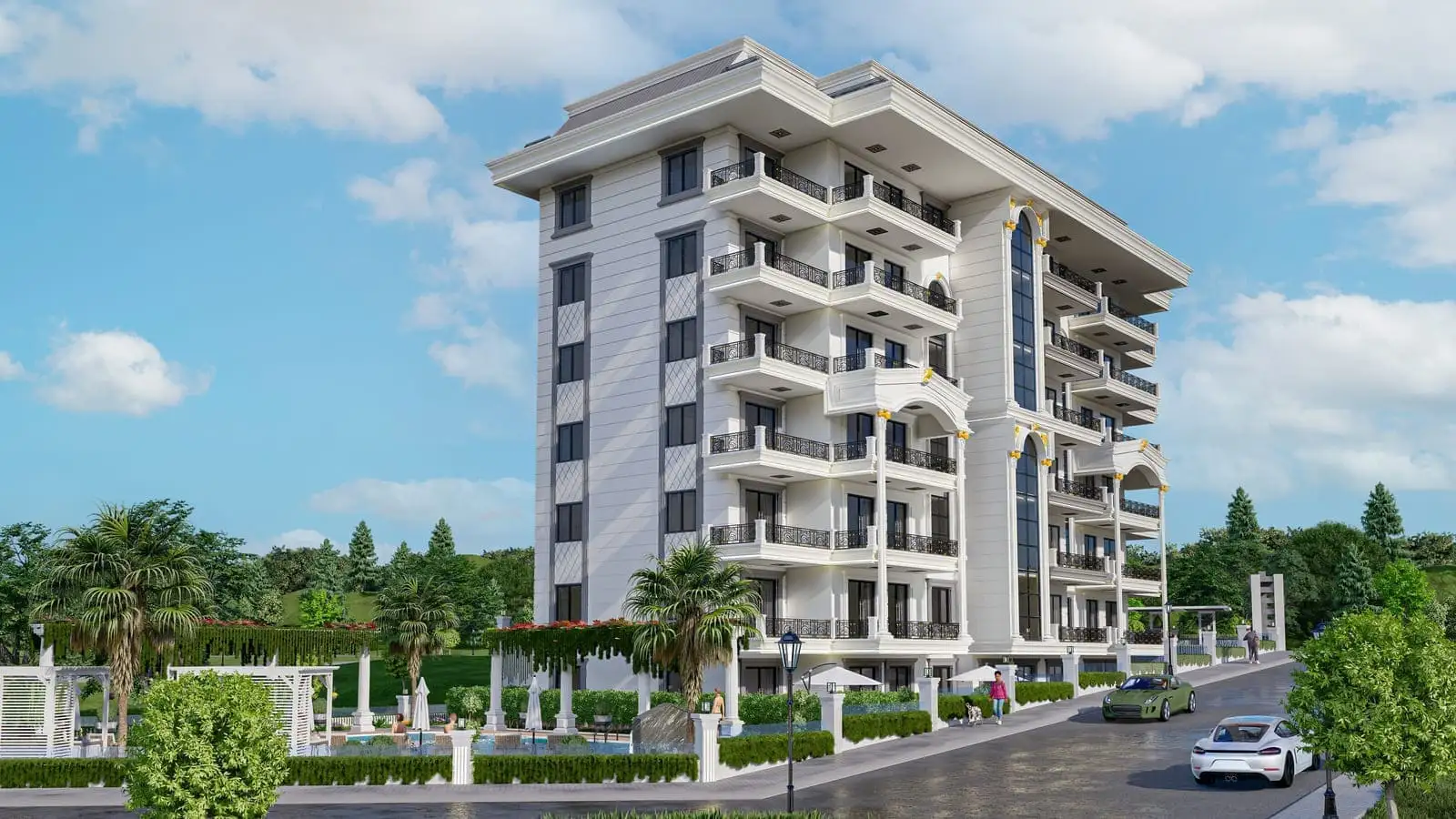 Что в комплексе: На закрытой, озелененной территории будет расположен 1 жилой блок, открытый бассейн, детский бассейн, беседки для отдыха, детская площадка, крытый бассейн, хамам, сауна, фитнес, открытая парковка.