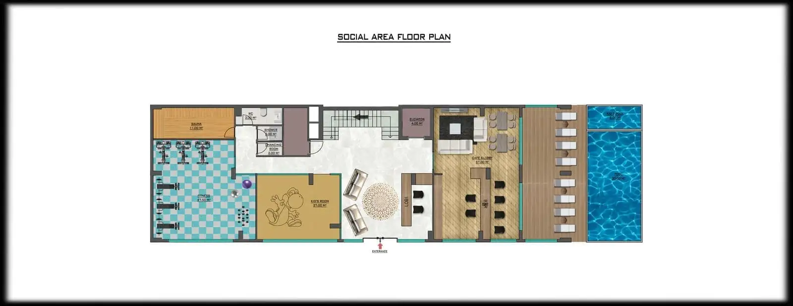 Что в комплексе: На закрытой территории комплекса будет расположен один жилой блок на 20 квартир, открытый бассейн, детская площадка, мини клуб, финская сауна, фитнес, открытая парковка, генератор.